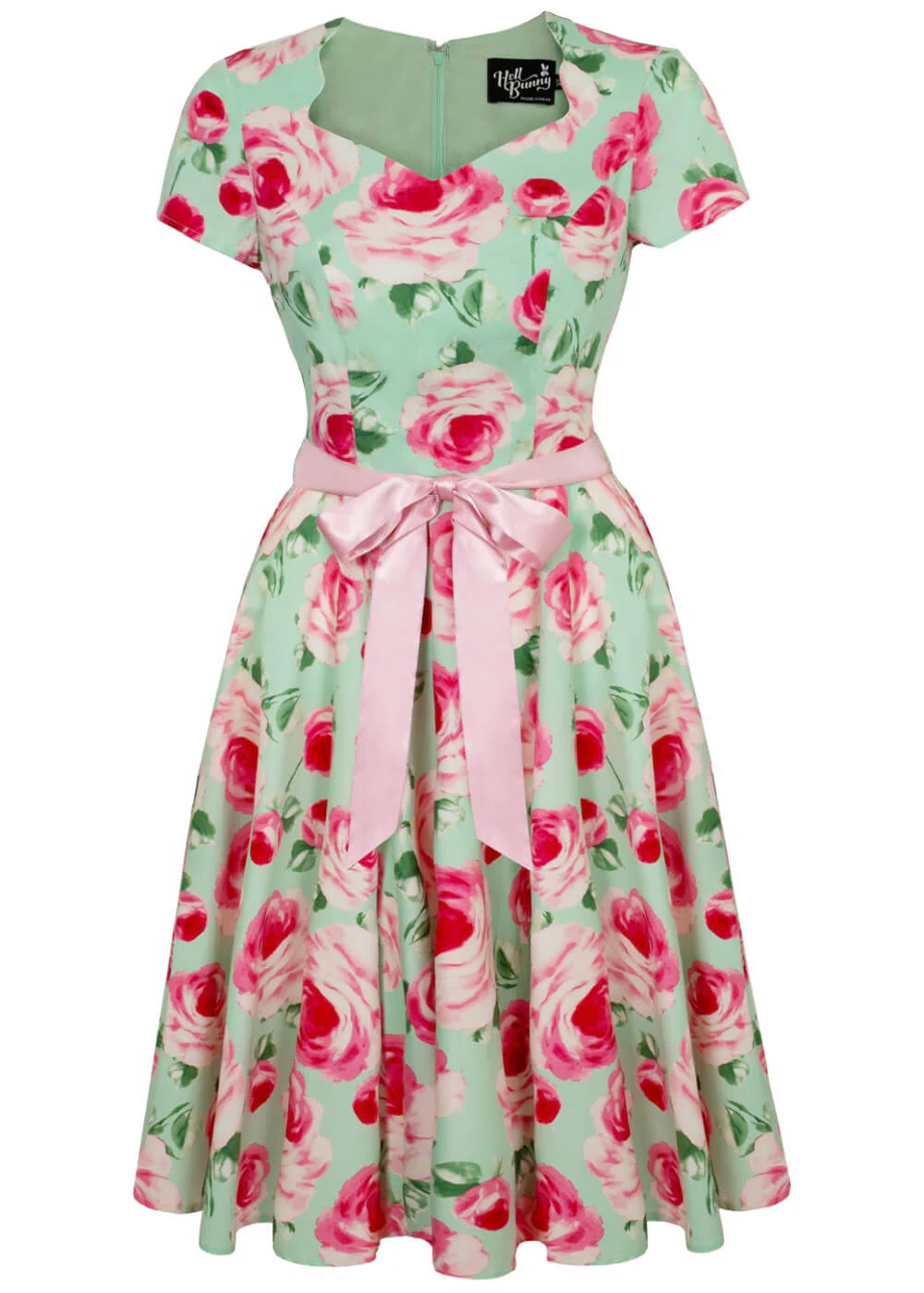 Hell Bunny Claire Roses 50’s Swing Jurk Mint