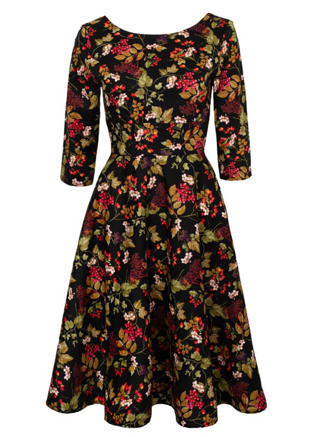 Hell Bunny Dolce Vita Roses 50’s Swing Jurk Zwart