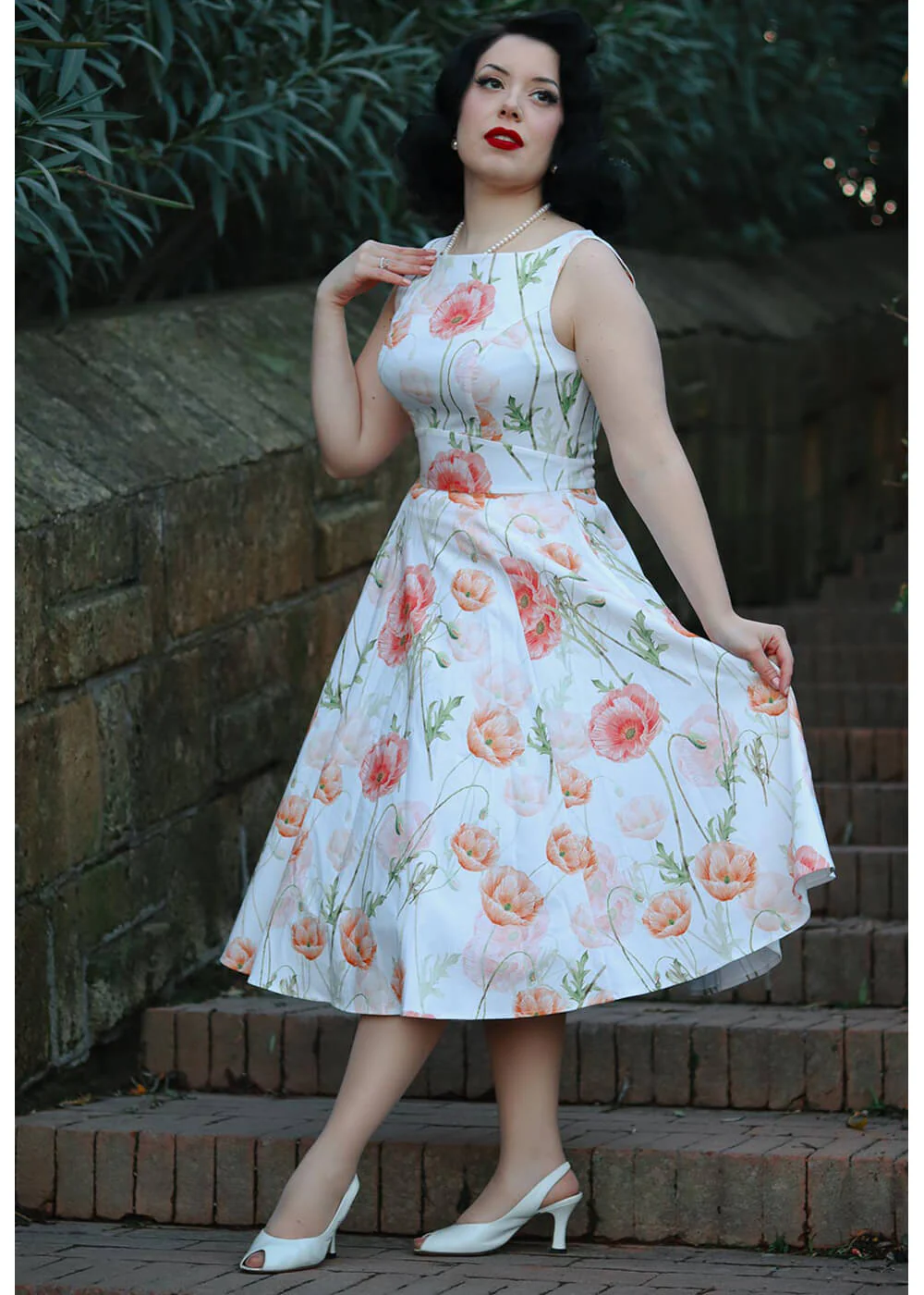 Hearts & Roses Betty Vintage Rose 50’s Swing Jurk Cream