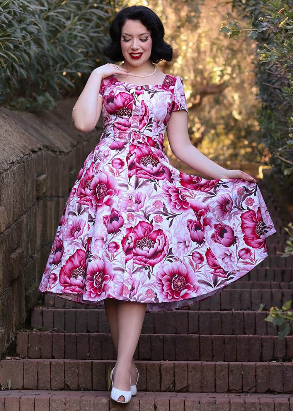 Hearts & Roses Camille Robe Vintage Années 50 à Fleurs Roses