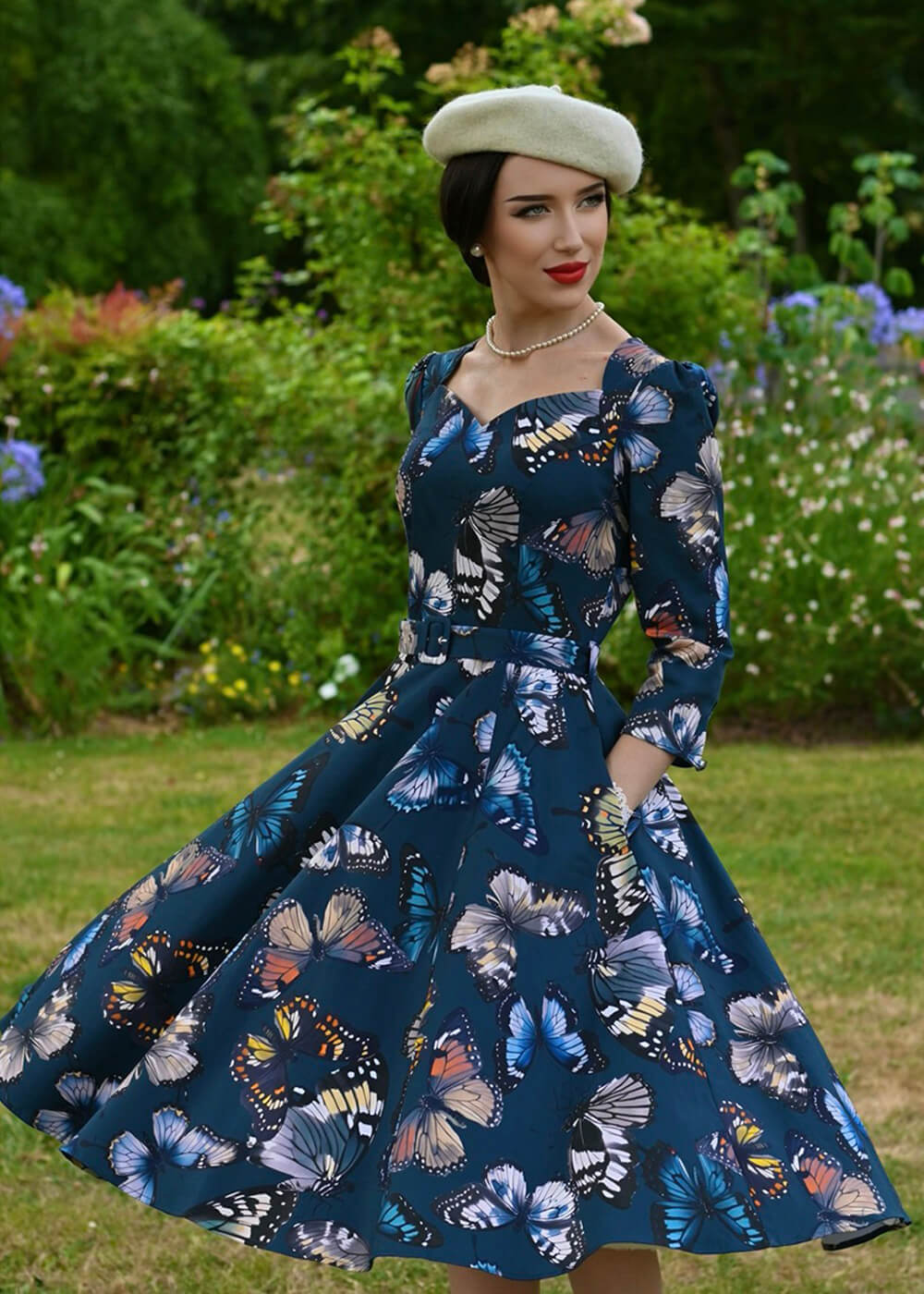 Hearts & Roses Bambi Papillon Robe Swing Années 50 Bleue