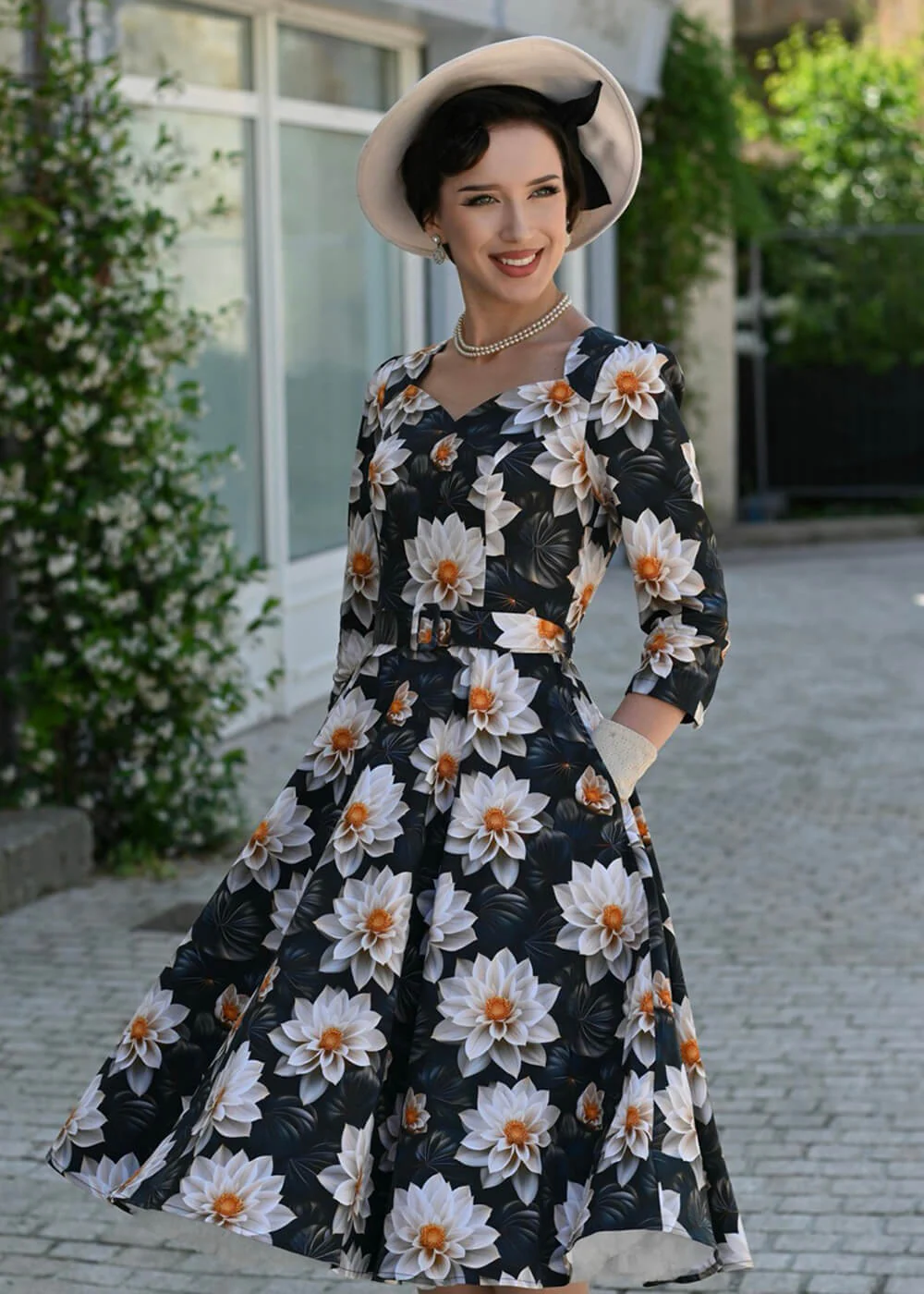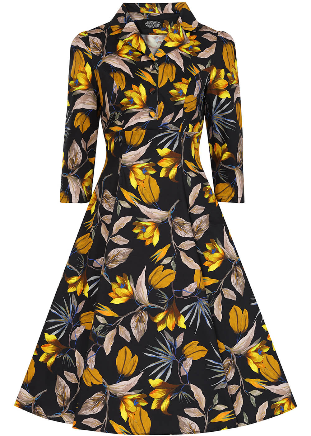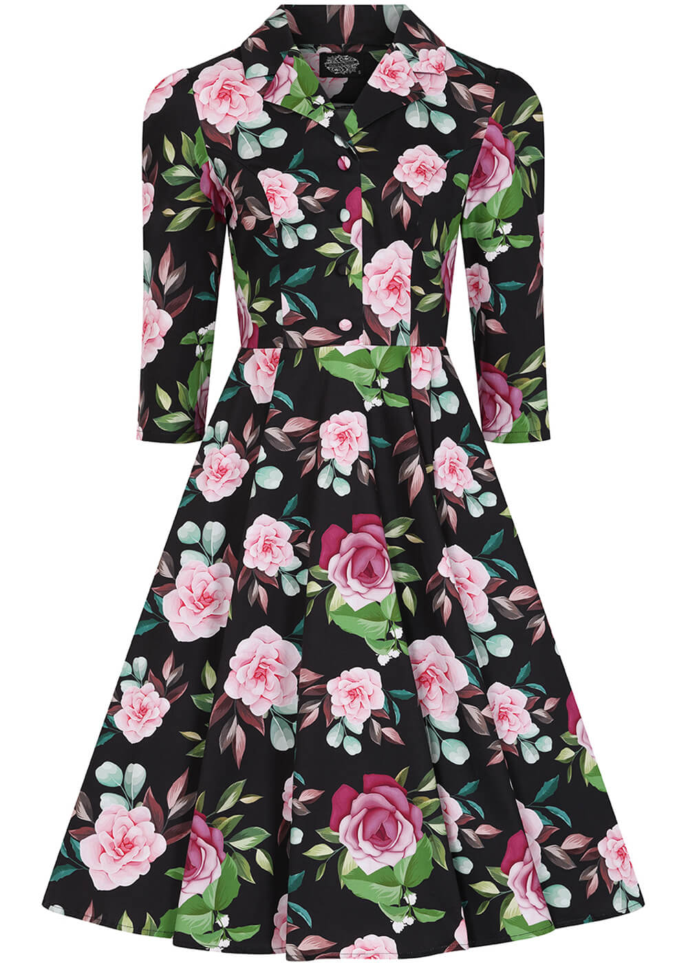 Hearts & Roses Robe Swing Farah Floral 50’s – Noir