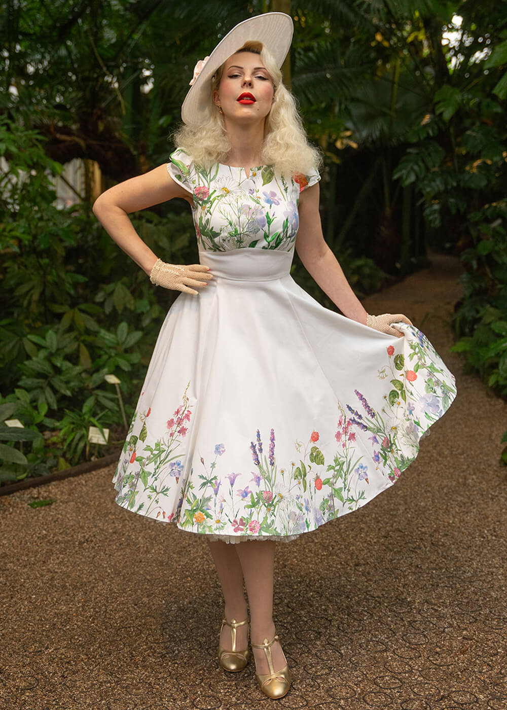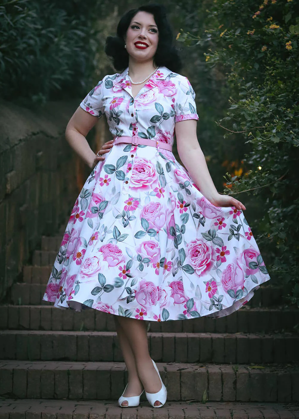 Hearts & Roses Luella Robe Fleurie Années 50 Swing Blanche