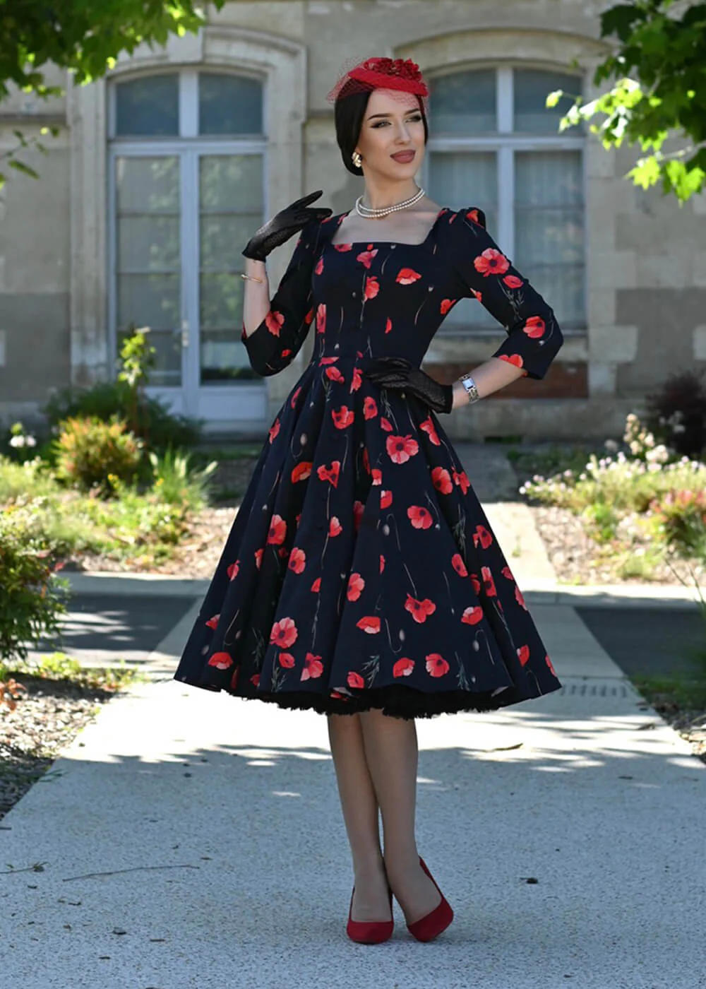 Hearts & Roses Rain Poppy Roses 50’s Swing Jurk