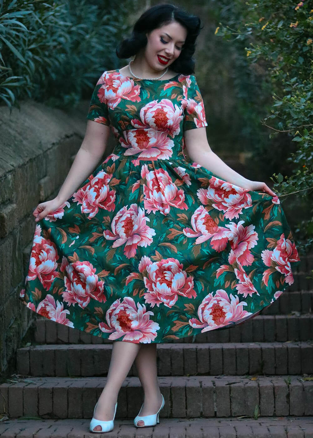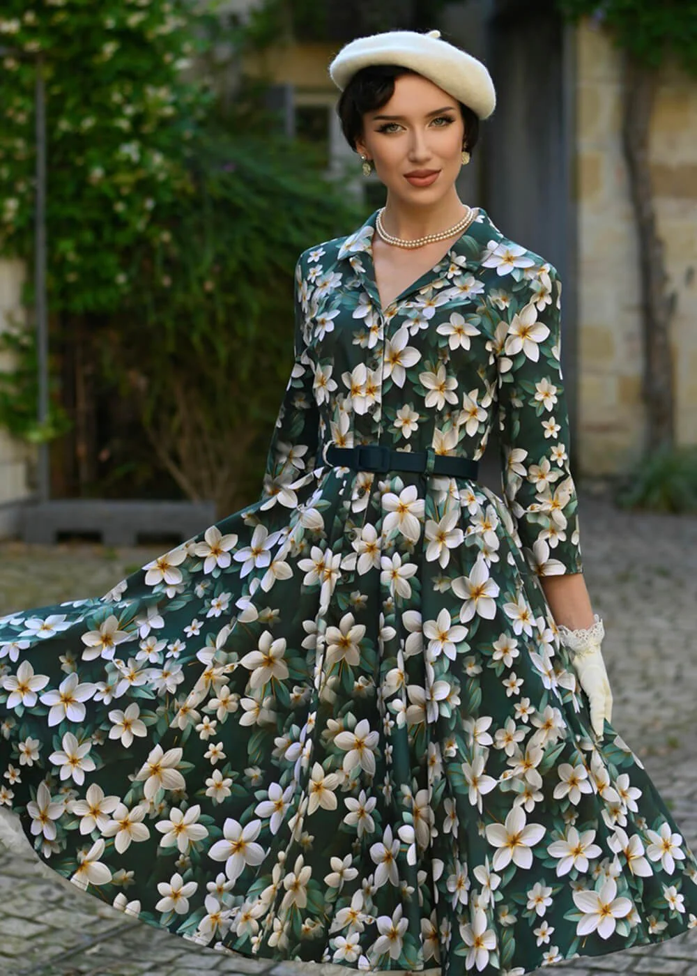 Hearts & Roses Skye Floral Robe swing années 50 Verte