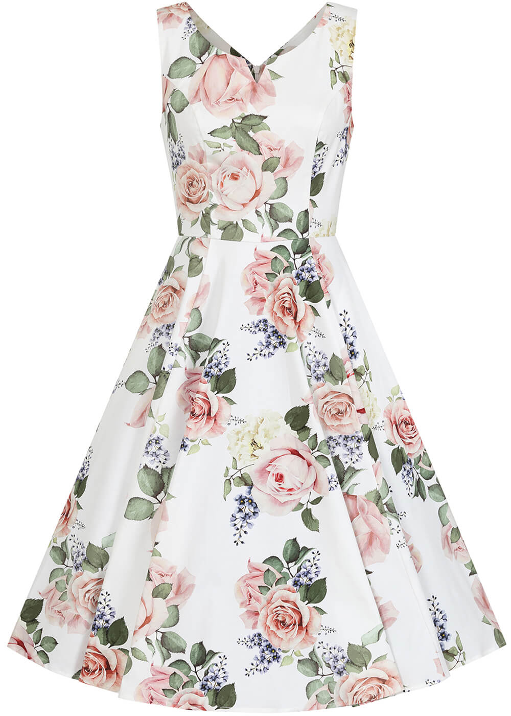 Hearts & Roses Vera Robe Années 50 Fleurie Blanche
