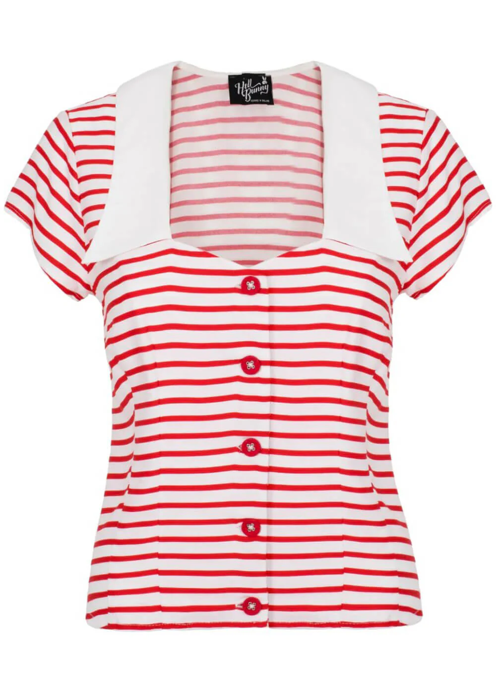 Hell Bunny Ahoy Stripe 60’s Blouse Rood