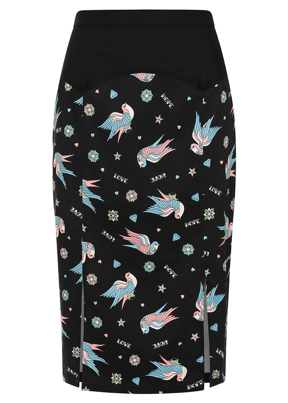 Banned Marilou Hirondelles Jupe Crayon Années 50 Noire