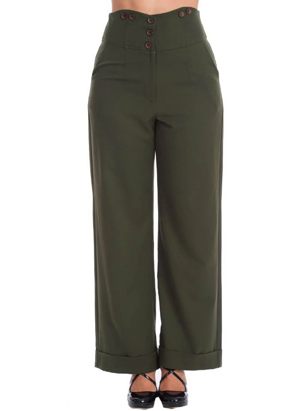 Banned Pantalon à Rayures Fines Années 40 Marron