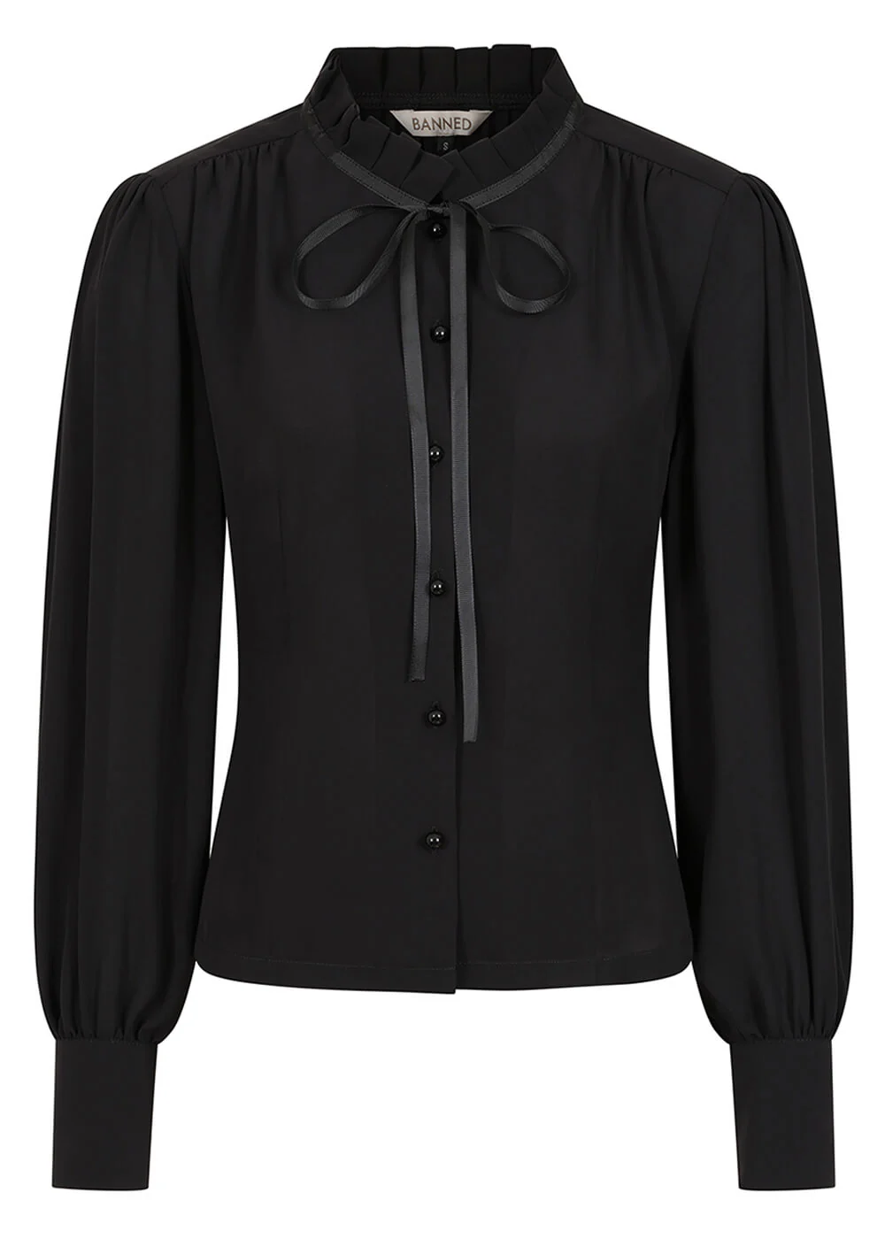 Banned Reine des Chats Blouse des Années 60 Blanche
