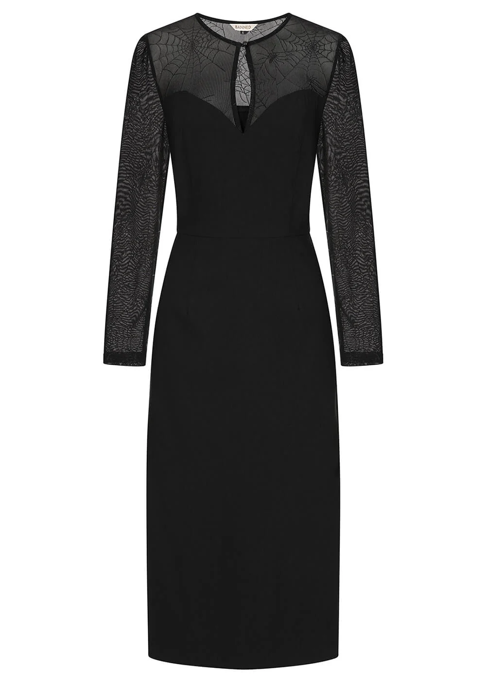 Banned Retro Elvira Spiderweb Jurk Zwart