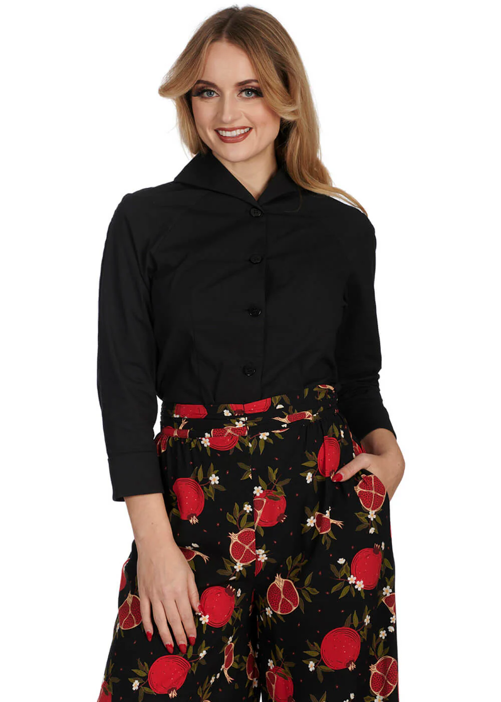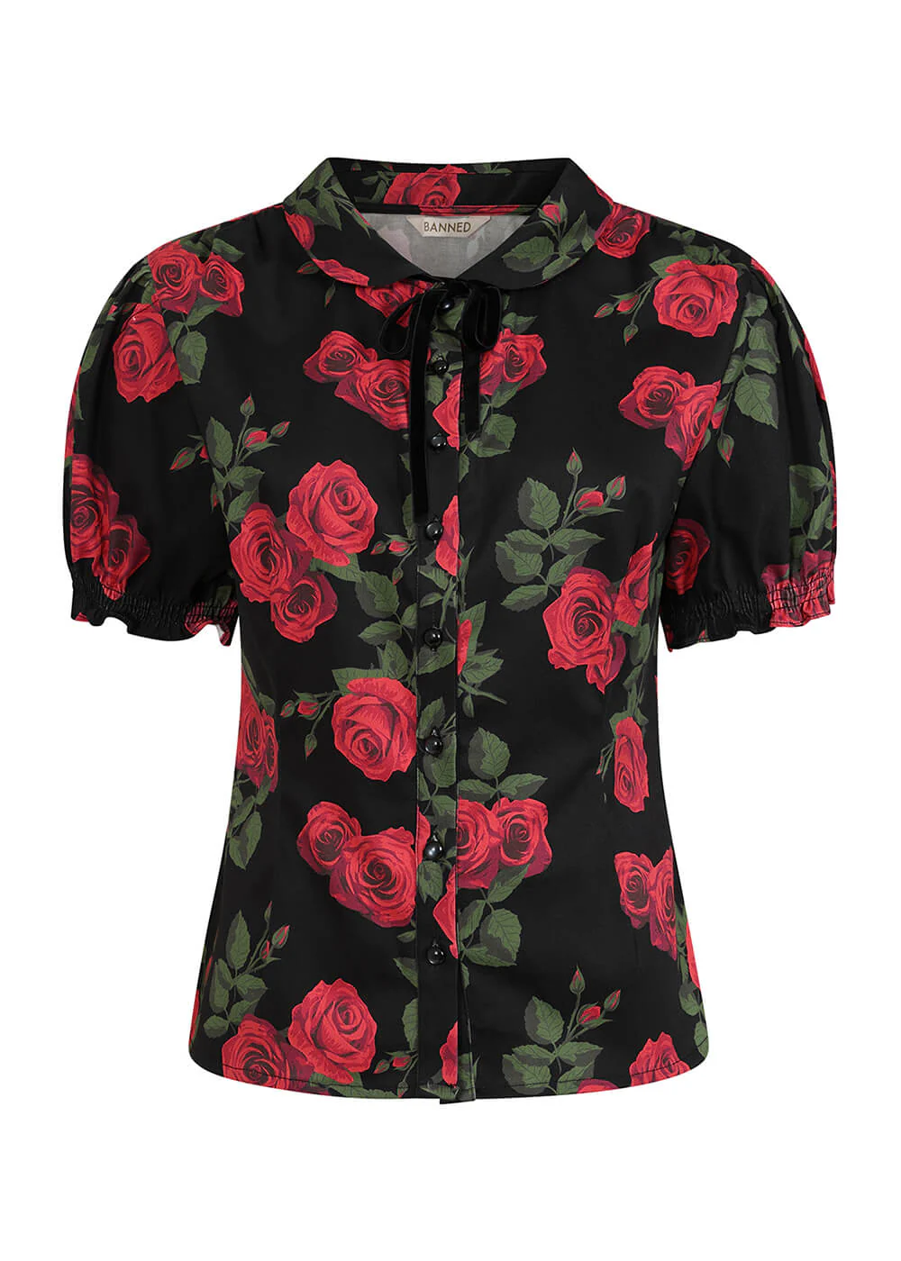 Banned Retro Lilly Romantic Roses Blouse Zwart