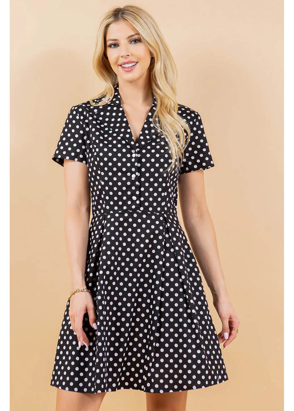 LA Soul Fleur Robe A-Lignes à Pois Noire