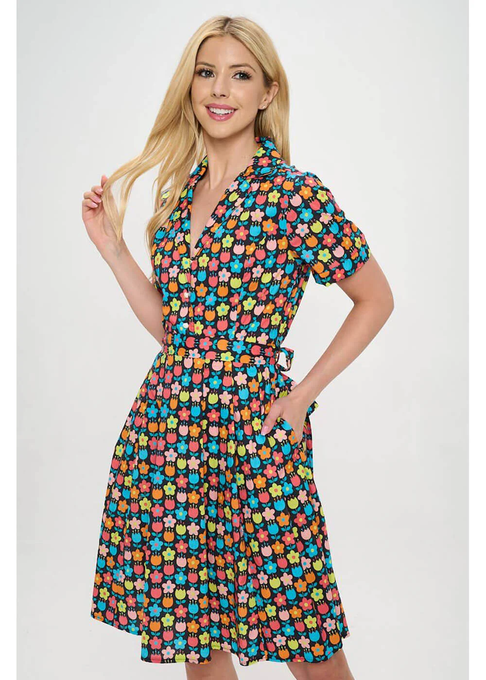 LA Soul Nova Fleurs Rétro A-Ligne Robe Noir