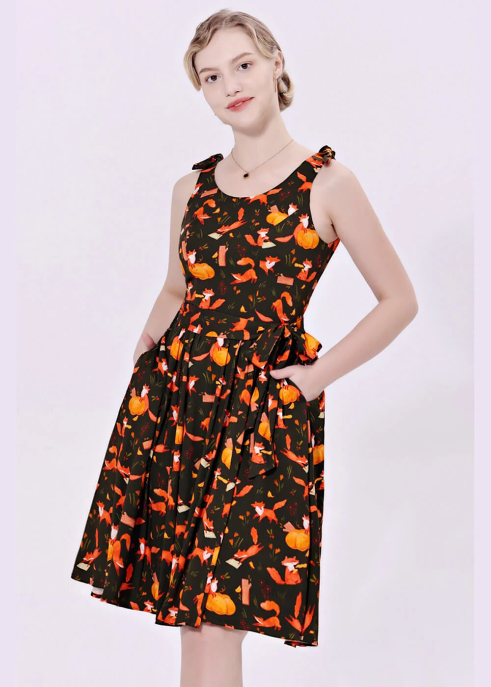 Miss Lulo Bri Renards d’Automne Robe Swing Années 50 Grise