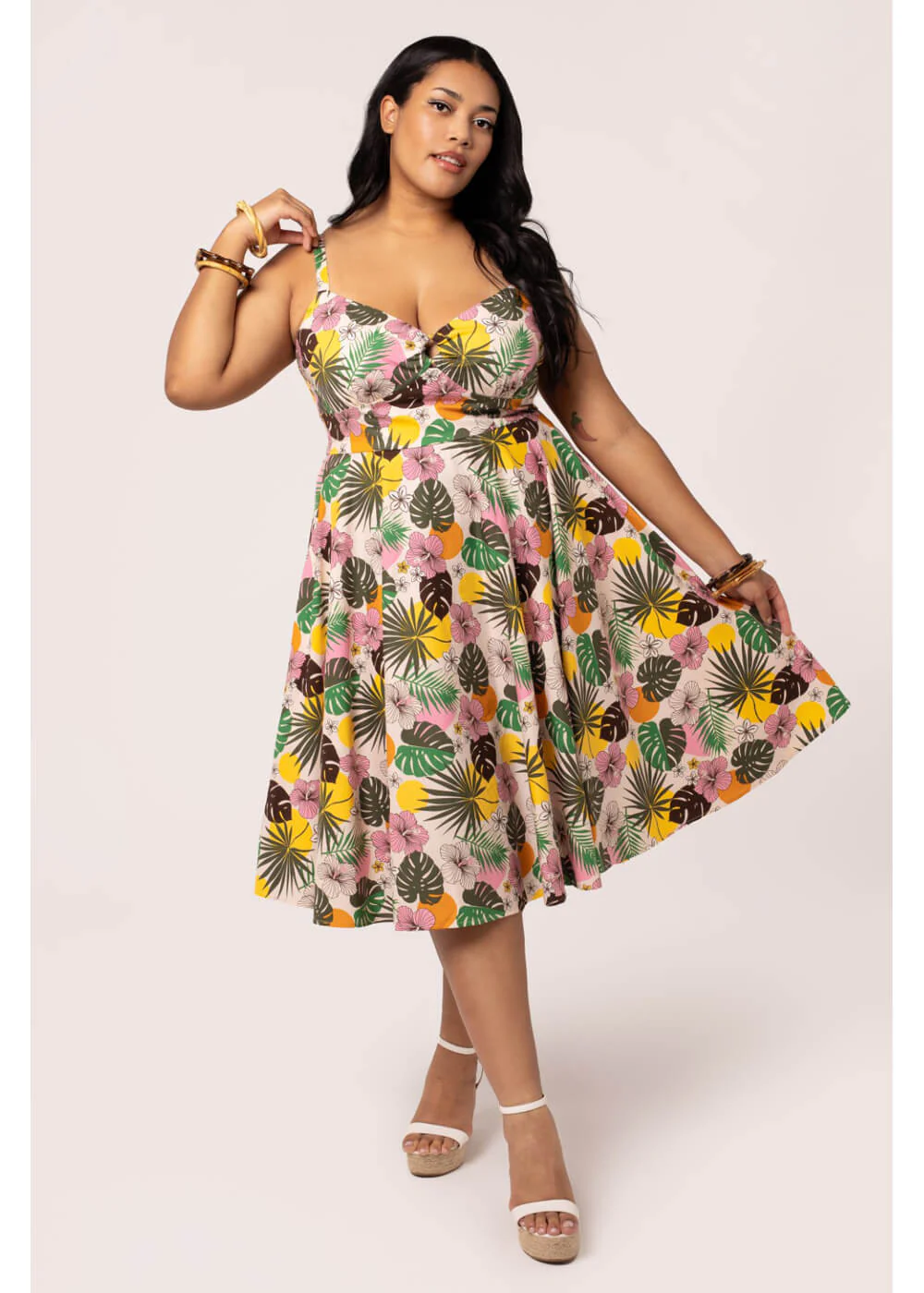 Robe Swing Hell Bunny Benita Tiki Années 50 en Beige