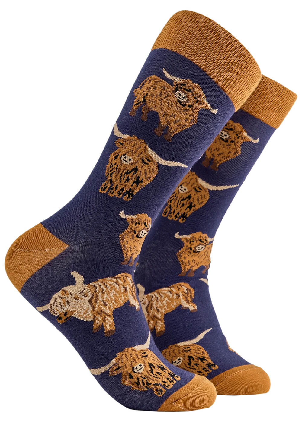 Soctopus Och Aye The Moo Chaussettes Vache Highland Bleu Foncé