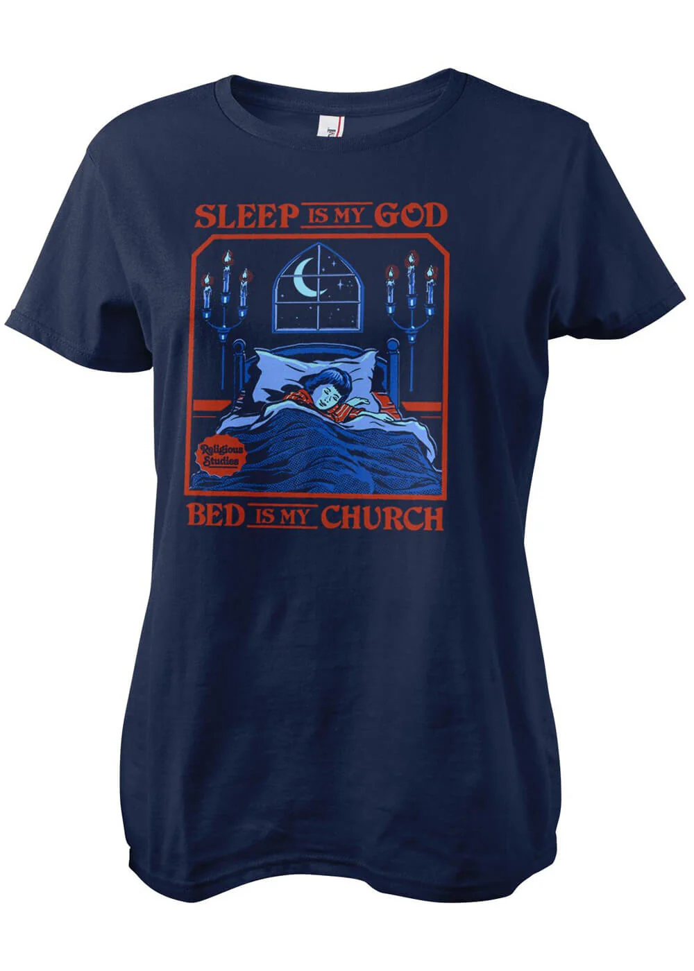 Steven Rhodes Bed Is My Church Girly T-Shirt Navy Blauw