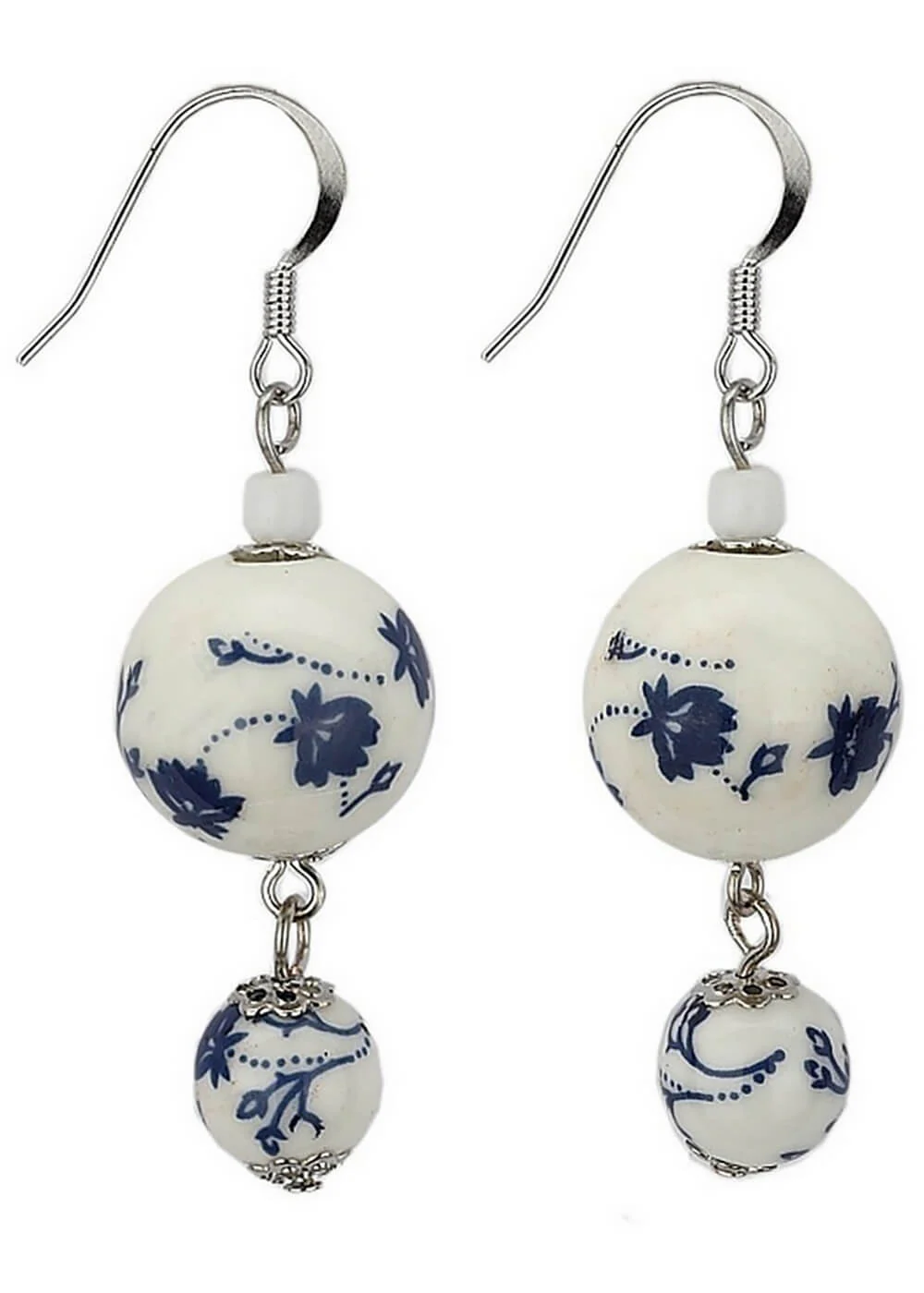 Succubus Jewels Boucles d’oreilles Tea Garden perles en céramique blanc et bleu