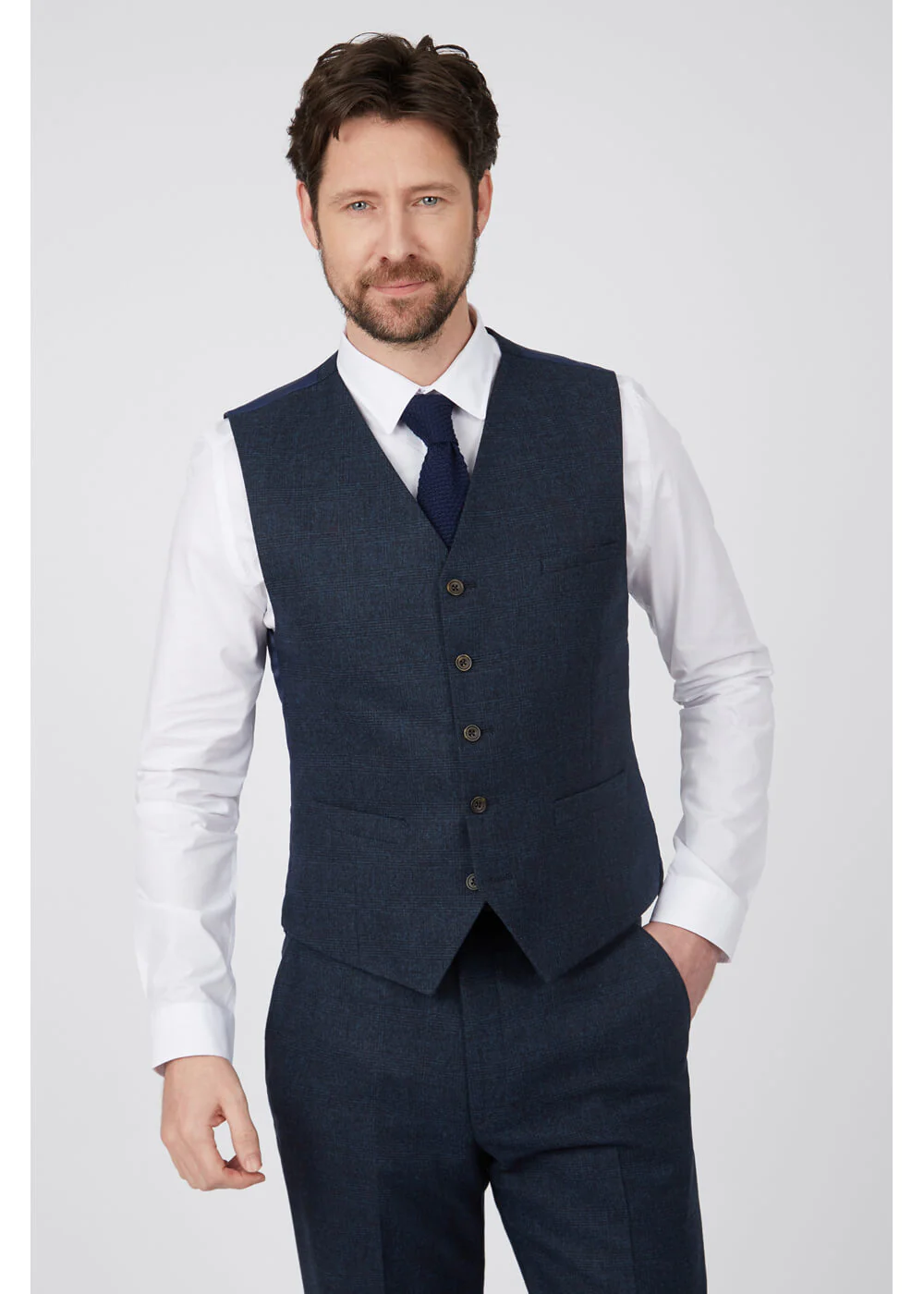Gibson London Gerard Grouse Check Gilet Navy Zwart