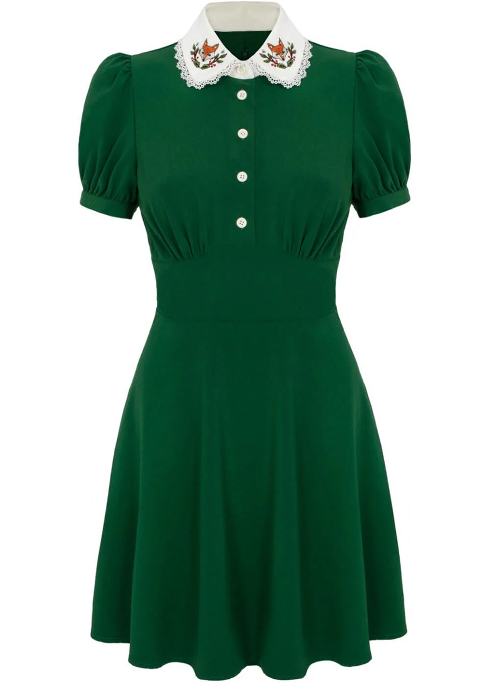Unique Vintage Smak Parlour Garden Party 60’s A-Lijn Jurk Mosterd