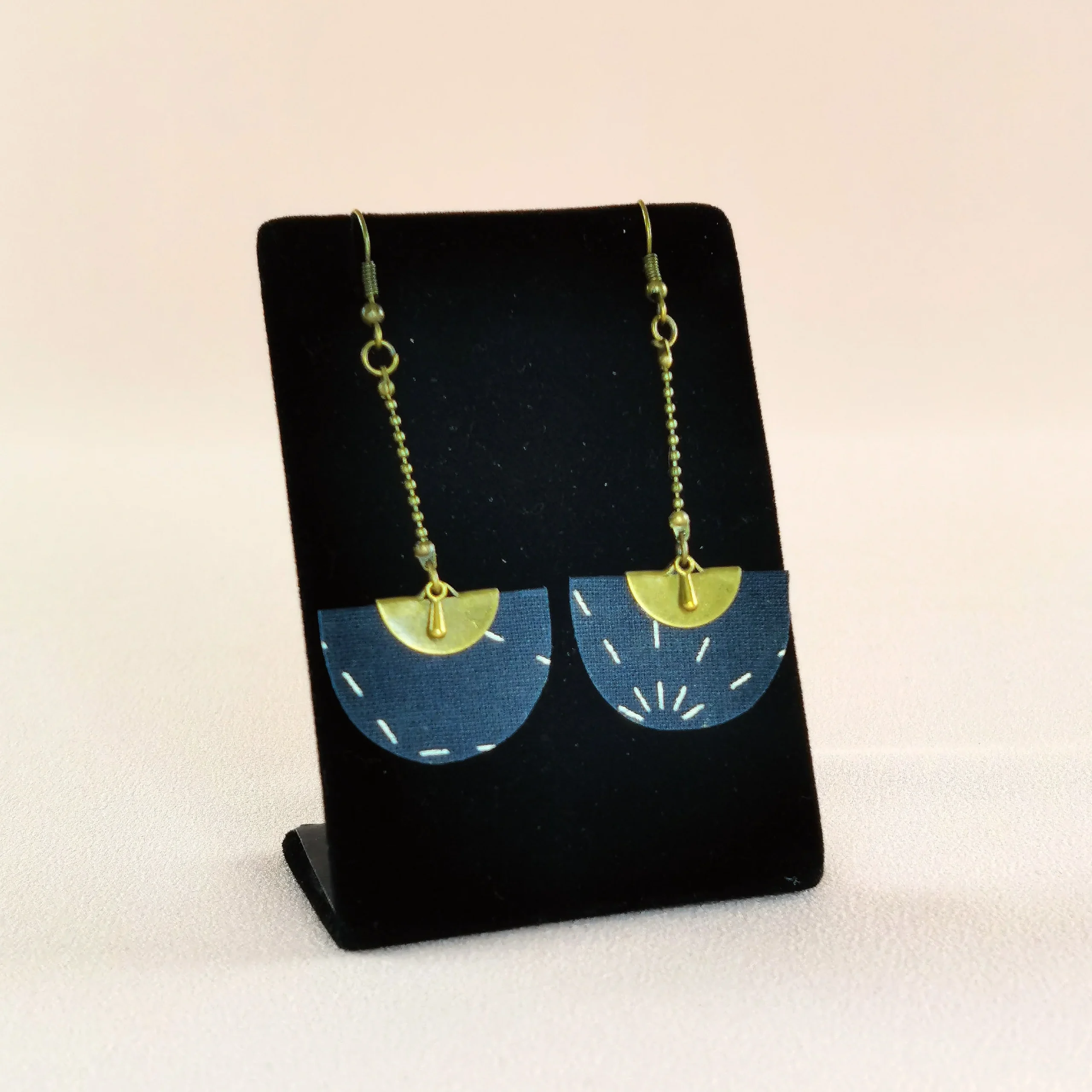 Boucles d’oreilles pendantes demi-lune en tissu et en laiton