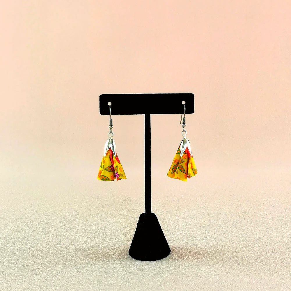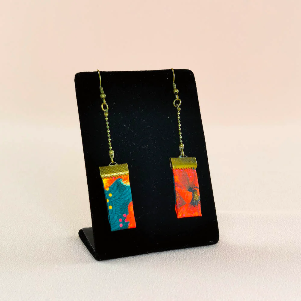 Boucles d’oreilles pendantes rectangles en tissu et en laiton
