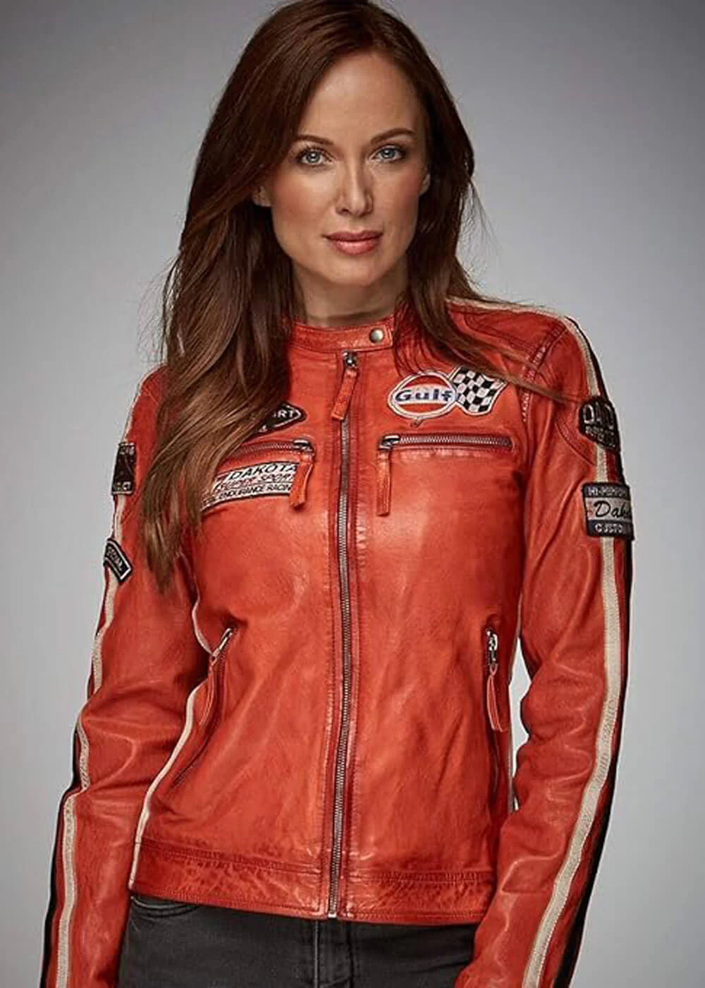 Grand Prix Dames Gulf Racing Leren Jas Oranje