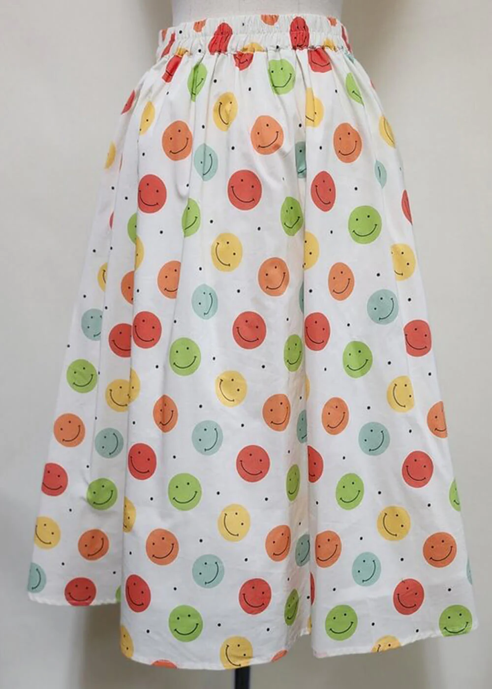 Tulip B Smiley Faces Jupe Swing des années 50 Ivoire