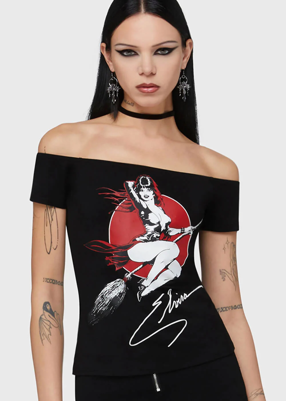 Killstar x Elvira Moonstruck Bardot Top Zwart