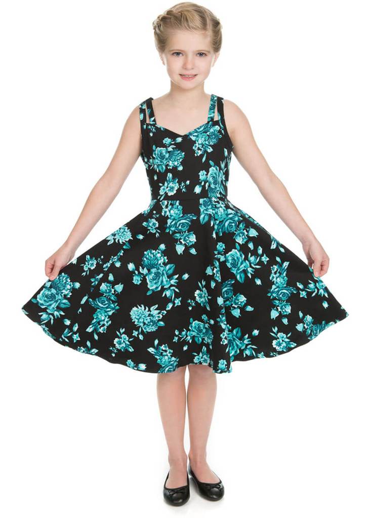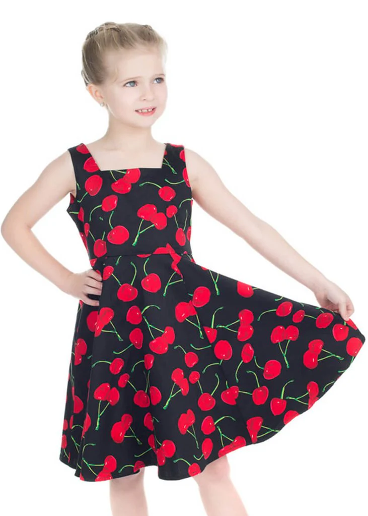 Hearts & Roses Kids Bombshell Cherry 50’s Swing Jurk Zwart