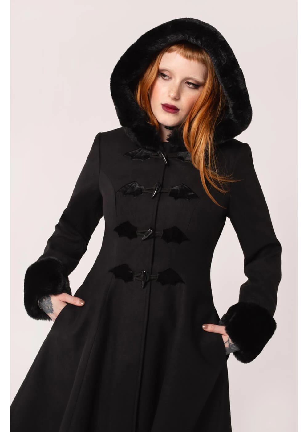 Hell Bunny Batilda Bat Duffel Veste Noire