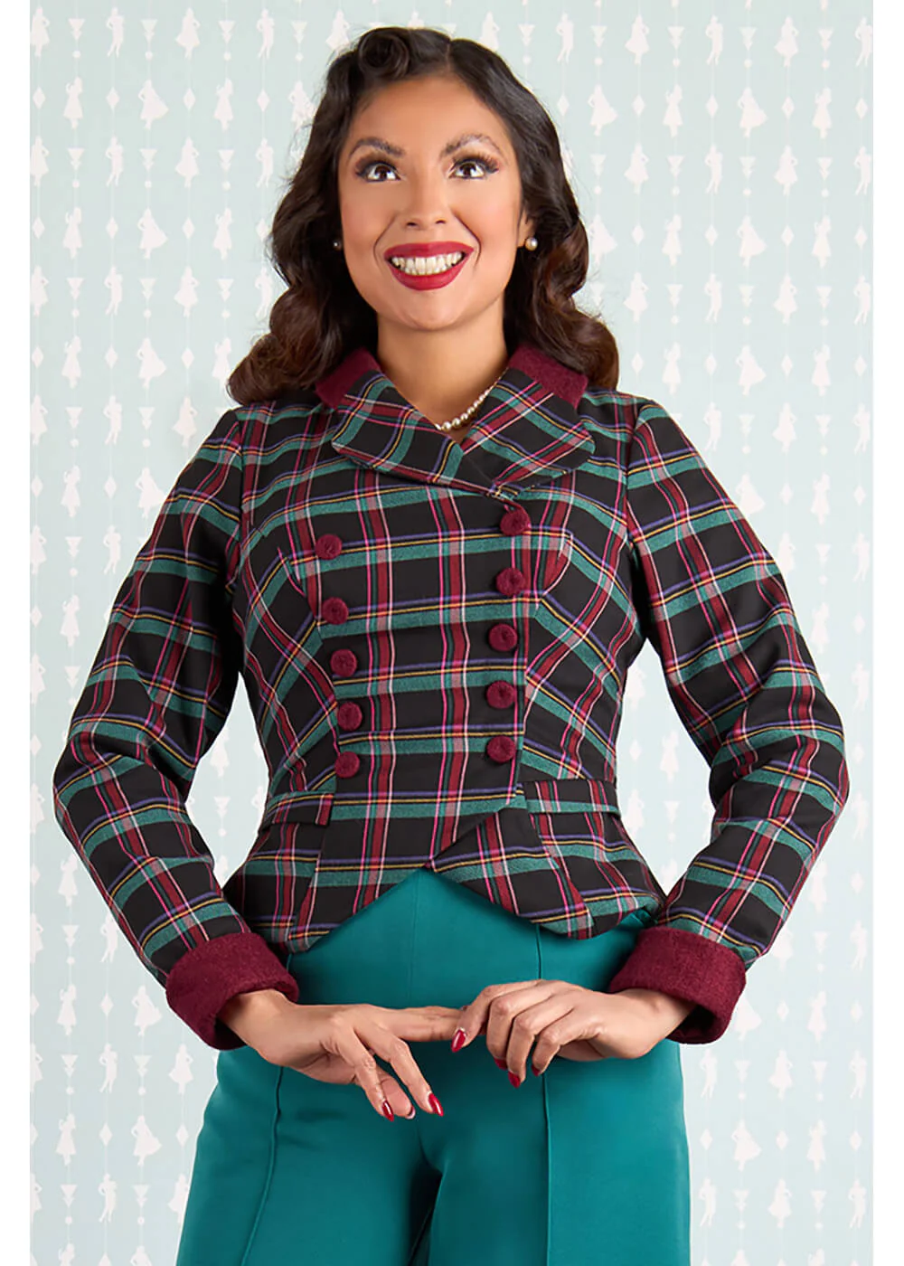 Miss Candyfloss Marwa Kat Blazer tartan années 40 — Petrol