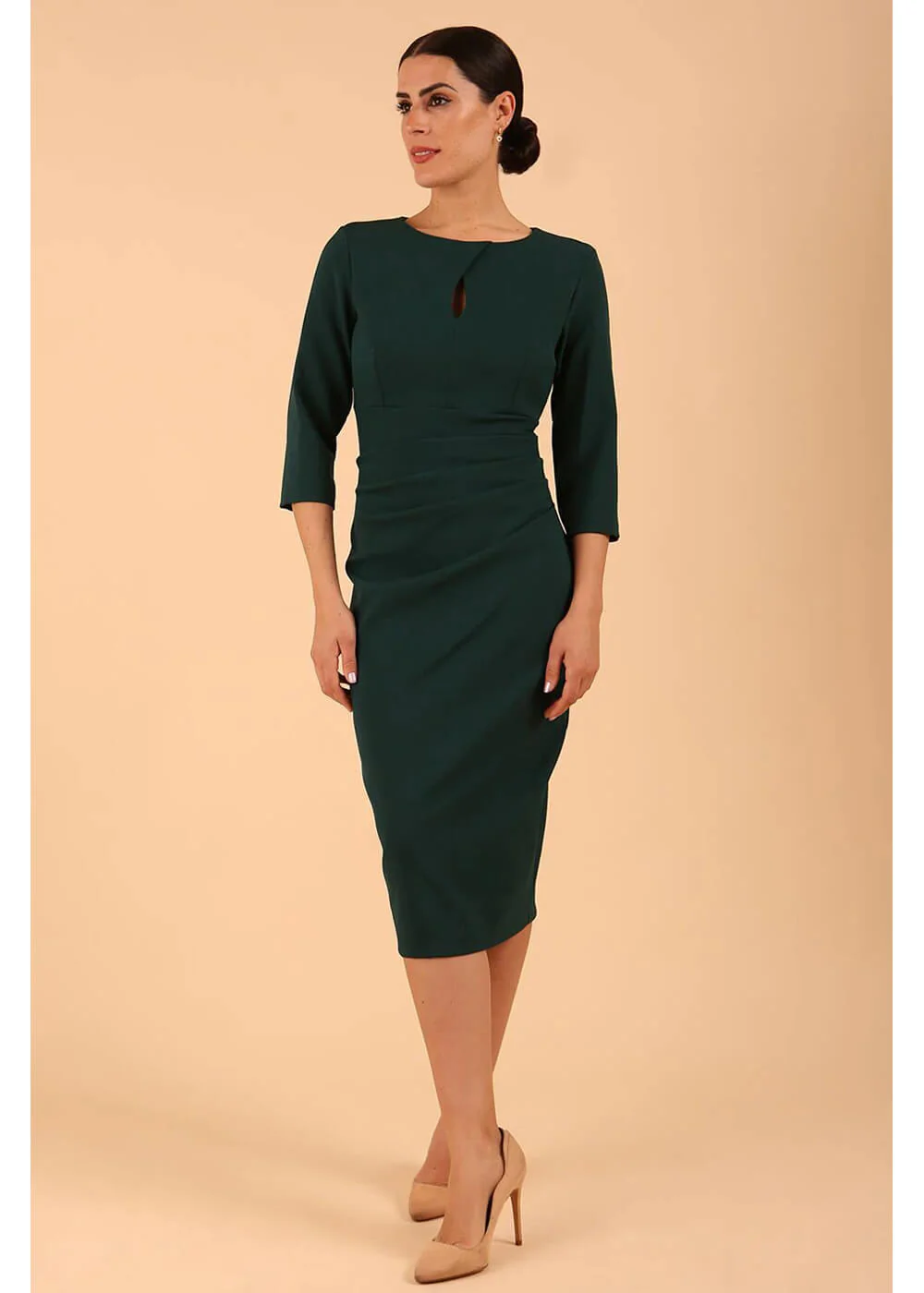 Diva Catwalk Ubrique Manches Robe Crayon Années 50 Vert Foncé