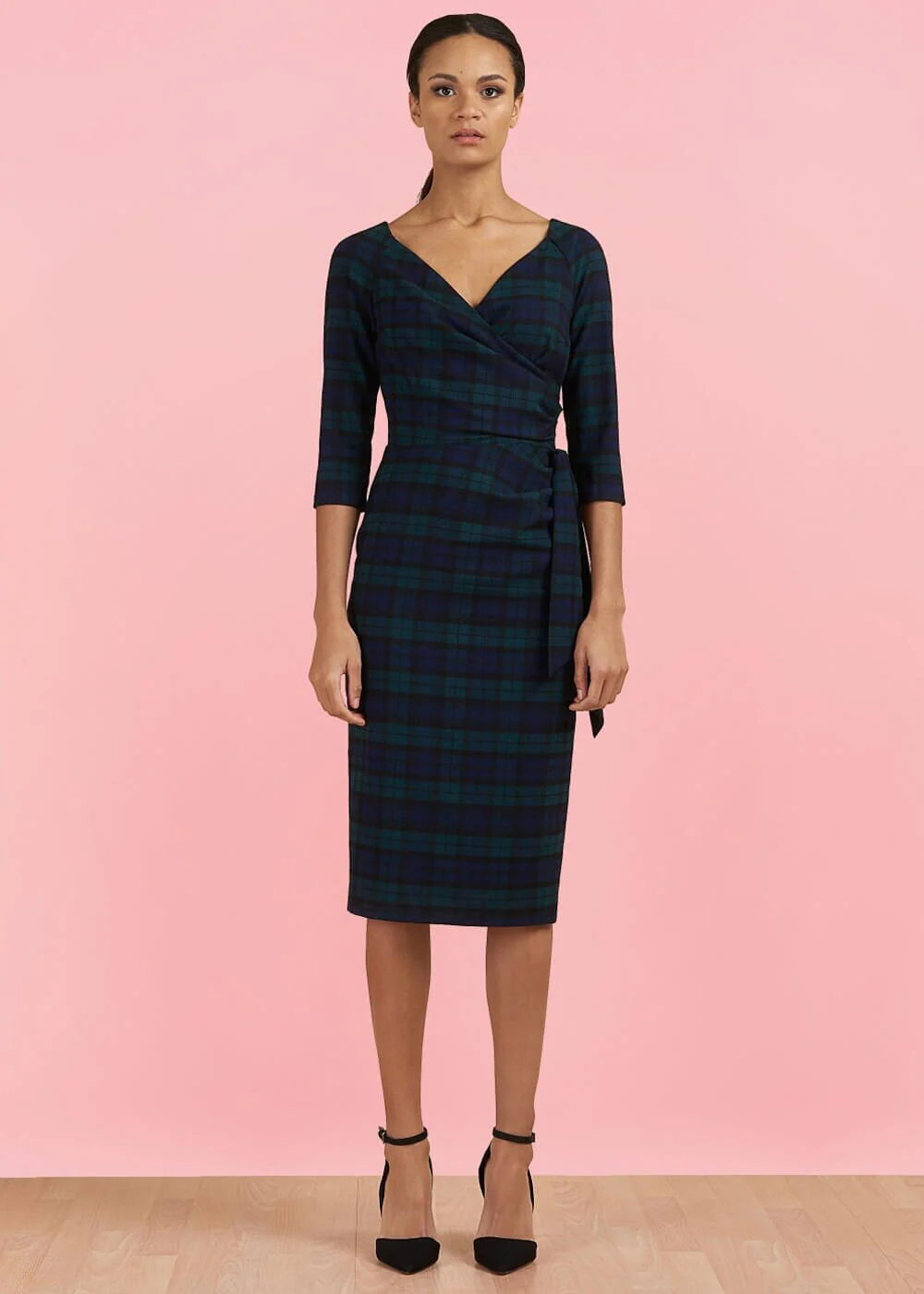 Robe Crayon Tartan Hourglass de Pretty Dress Company en Vert et Marine