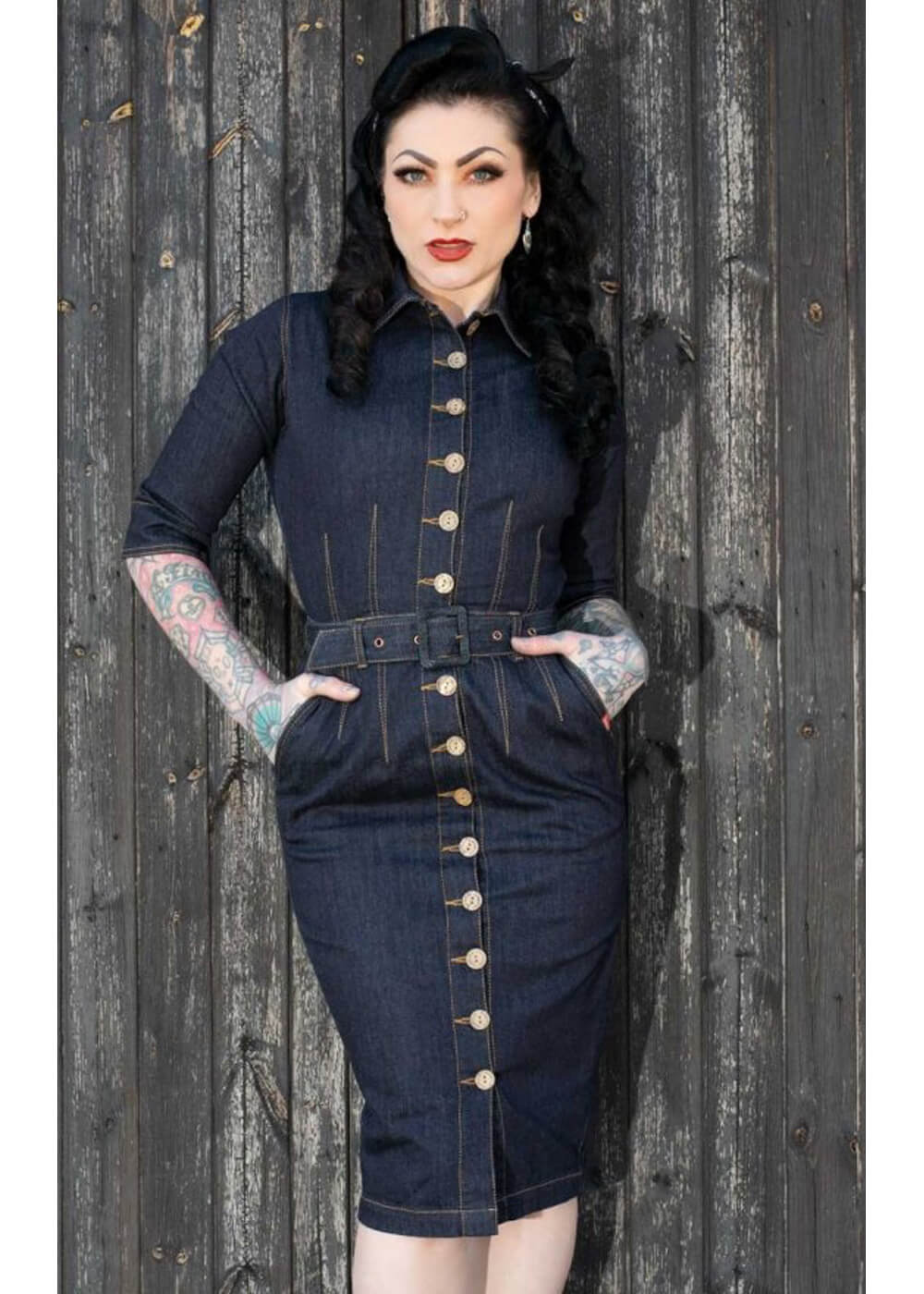 Succubus Clothing Ruby – Robe crayon denim noire Rockabilly