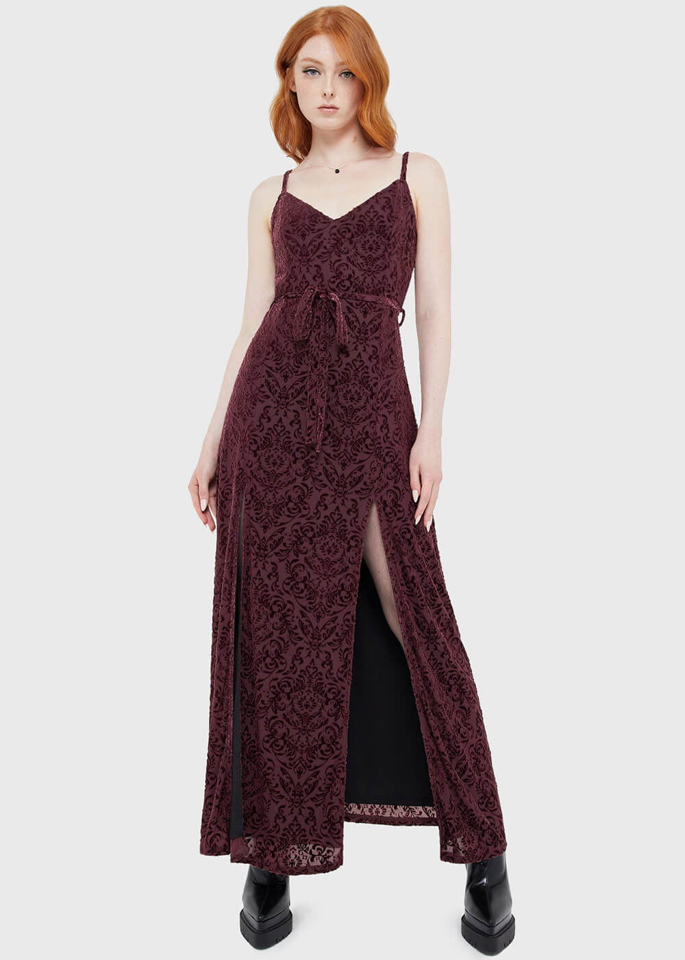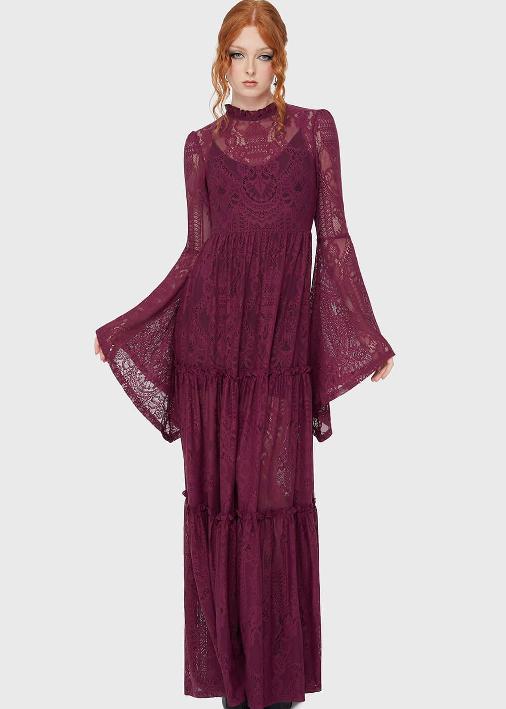 Killstar Robe Maxi en Dentelle Hecate Prune