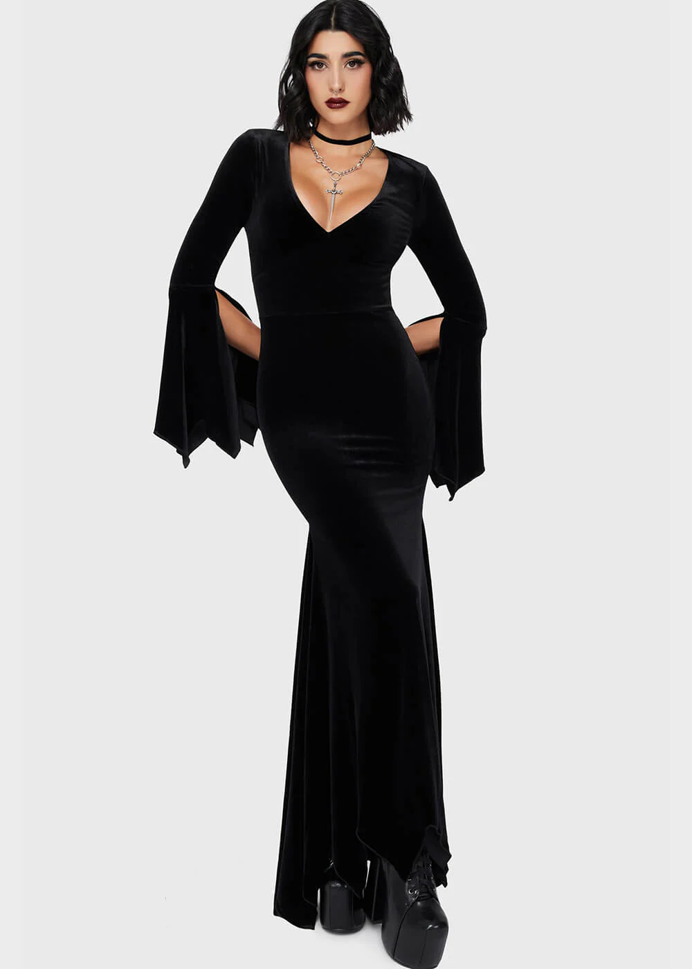 Killstar Mortaveil Robe Maxi en Velours Noir