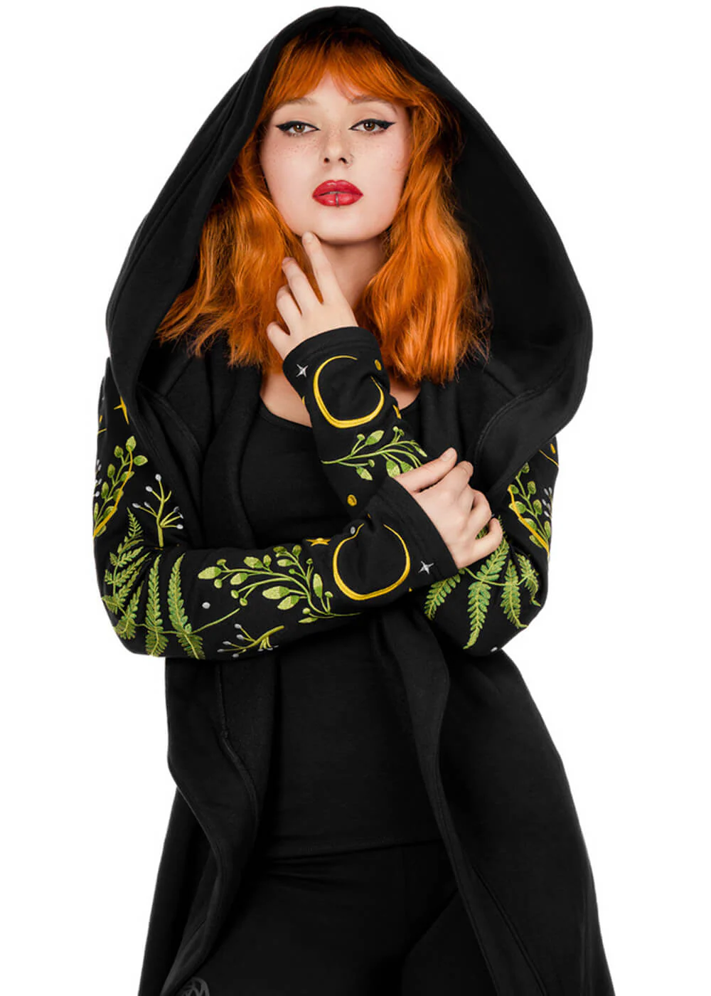 Restyle Herbal Fern Embroidery Hoodie Zwart