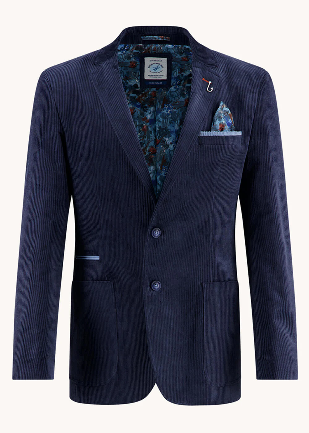 Dit seizoen neemt Fred ons mee naar de Schotse Hooglanden! Dit donkerblauwe corduroy colbert heeft het beste van beide werelden: een elegant model, maar met een speelse knipoog in de voering en vishaakje-pin. Avondje uit of naar kantoor, jouw look zal hoofden doen draaien: waar trek jij hem als eerst naartoe aan?