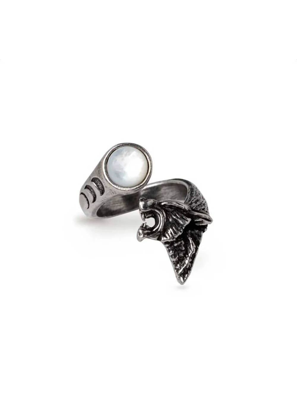 Laissez votre doigt être embrassé par le loup qui hurle à la lune sur cette bague exceptionnelle… Grâce à son design ouvert, elle est facile à porter et agréable à enfiler.
