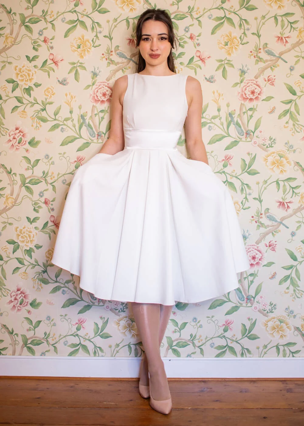 – Évasée à partir de la taille en une jupe fluide