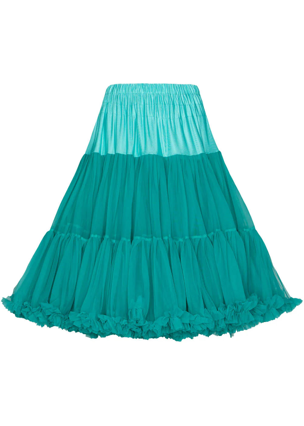 Ces jupons particulièrement doux se composent de deux couches de chiffon à deux étages, dotées chacune d’un bord festonné pour encore plus de volume. En-dessous, une sous-jupe plus courte empêche l’adhérence à vos collants.
