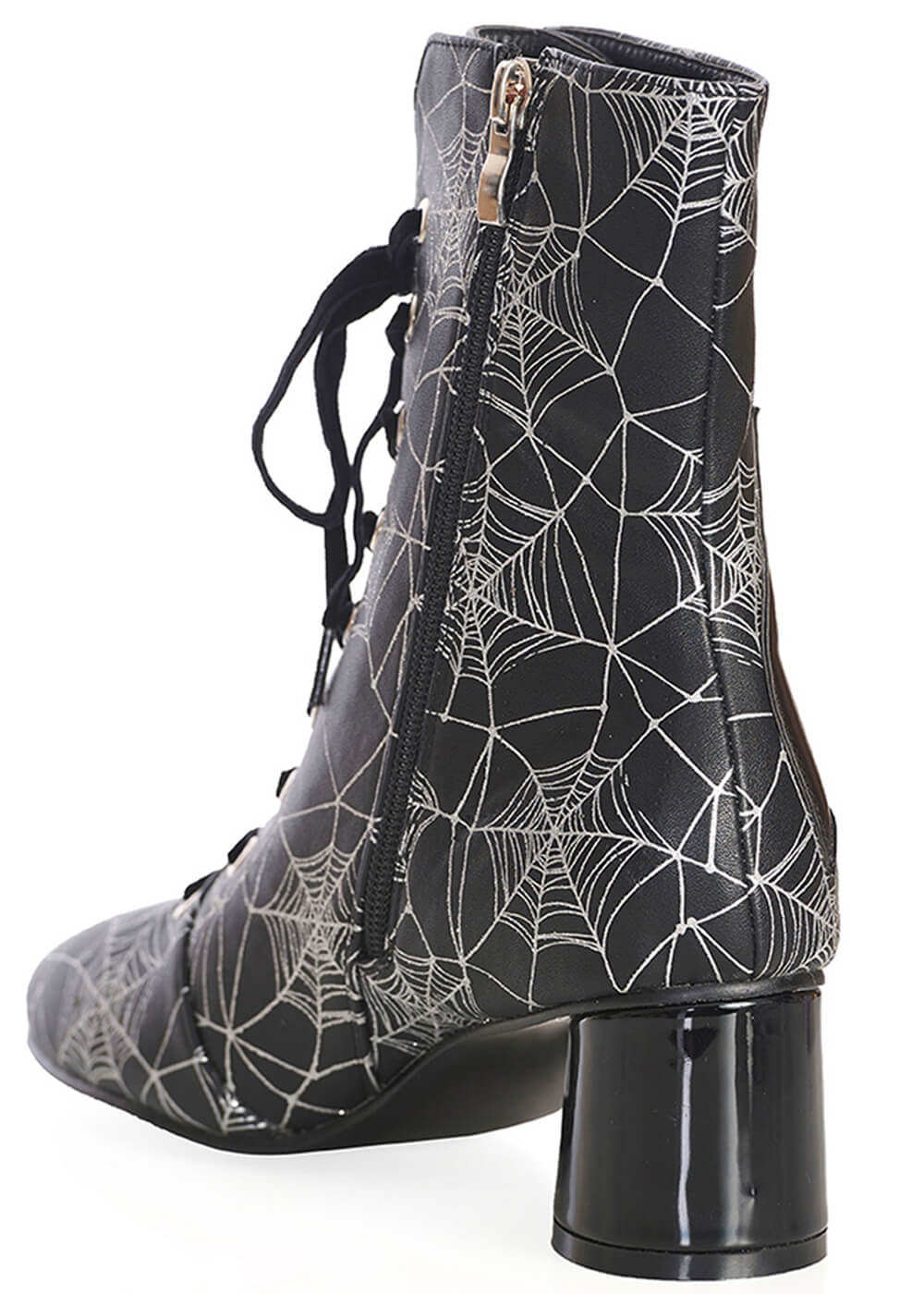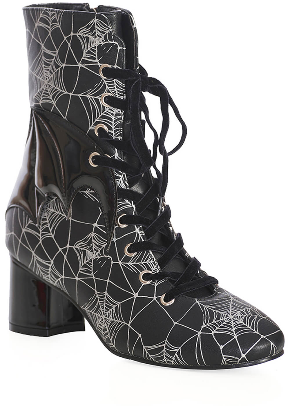 Twijfelend glijd je voet onder de vleermuisvleugels: gelukkig… geen hoektanden om je te bijten! De vleugels zijn angstaanjagend mooi met hun glanzende lak, die vastzitten aan het prachtige faux-leder, versierd met letterlijk schitterende spinnenwebben, wauw…