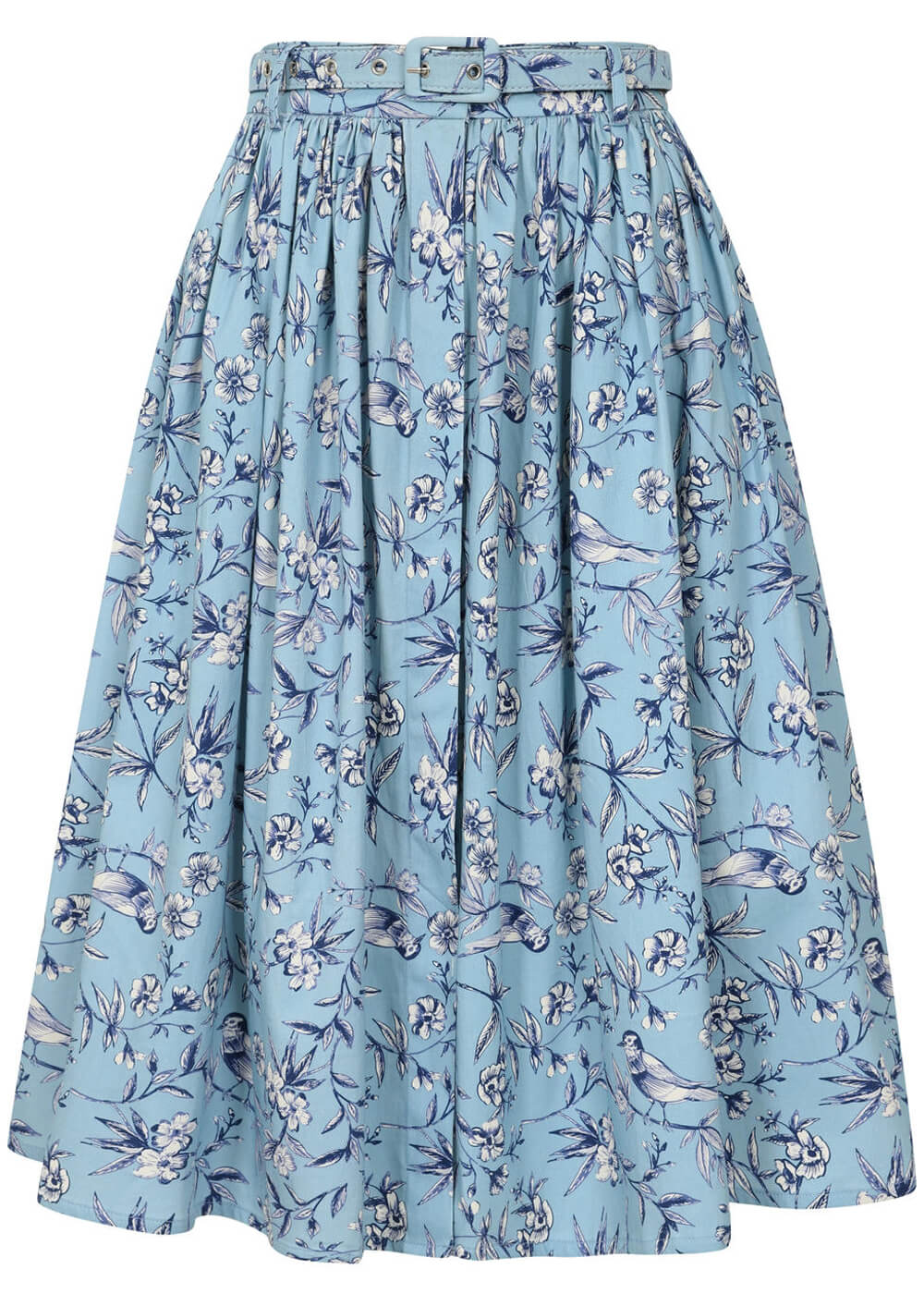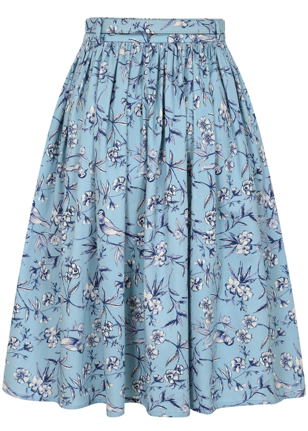 Aspirez-vous aussi à des journées plus chaudes et ensoleillées ? Avec Mila, elles arrivent bientôt ! Ce modèle en mélange de coton doux bleu ciel est orné d’un magnifique imprimé de branches fleuries et d’oiseaux. Elle présente une taille accentuée par une ceinture, s’épanouissant en une jupe évasée espiègle, parfaite pour tournoyer : et bonne nouvelle, rien ne vous en empêche 🙂