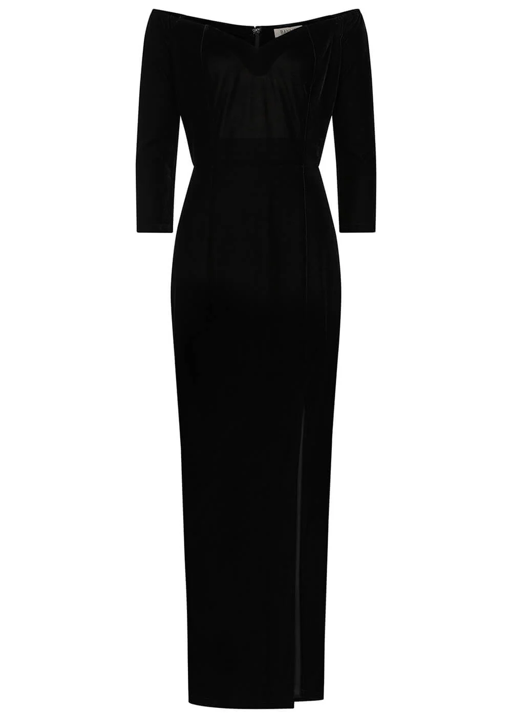 Amalia est la robe de rêve pour toutes les occasions, que ce soit pour une sortie agréable, un gala, les fêtes ou une réunion de sorcières ! Avec son velours noir profond et doux, elle est aussi agréable à porter qu’à admirer, avec un design off-shoulder espiègle qui ajoute une touche de séduction. Éclat, Glamour et Confort !
