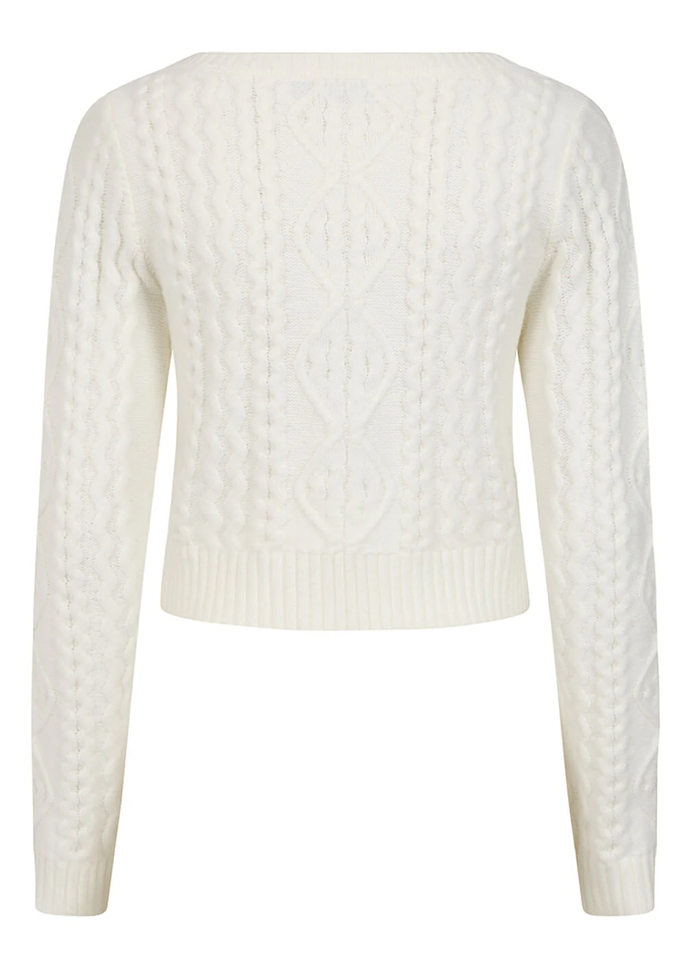 Deze prachtige ivoren jumper straalt vintage charme uit met haar elegante kabelbreipatroon en kortere lengte. De ribbelboord bij de hals en mouwuiteindes zorgen voor een snug fit, terwijl de veelzijdige kleur gemakkelijk te combineren is met al je favoriete outfits. Perfect voor een knusse brunch of een dagje uit, dit schatje wil je het hele jaar door dragen!