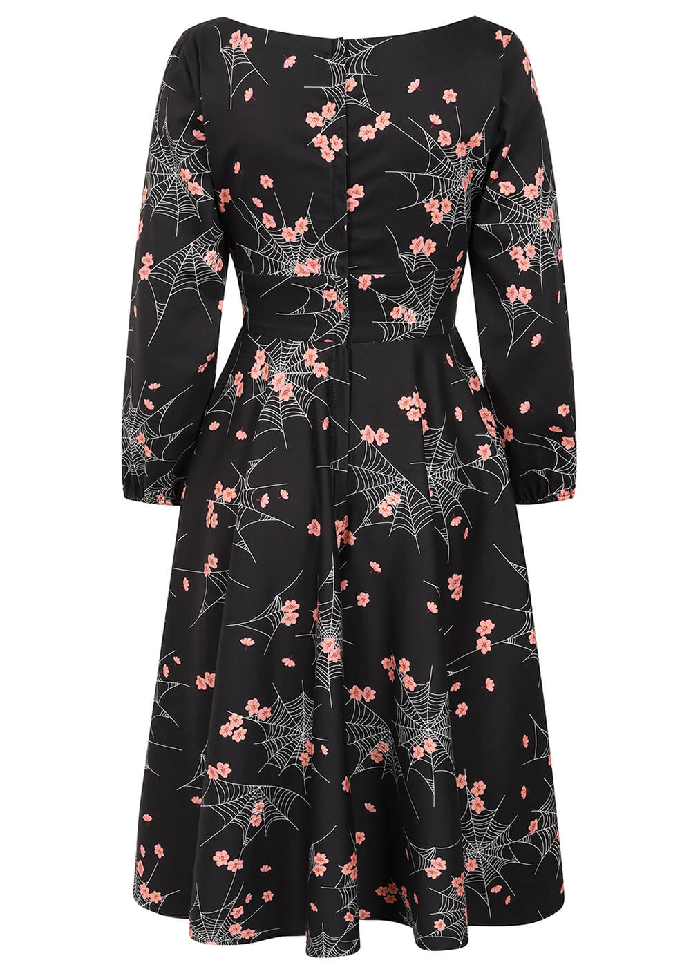 Le buste plissé avec un élastique stretch et confortable le long de l’encolure, permet à Mina de flirter des années 50 en faisant un clin d’œil aux temps anciens et s’adresse à tous ceux qui adorent les éléments cottage core dans leurs tenues. Avec ce motif toile d’araignée, elle est tout aussi parfaite pour un look gothique romantique. Si polyvalente, vous ne pourrez pas y résister !