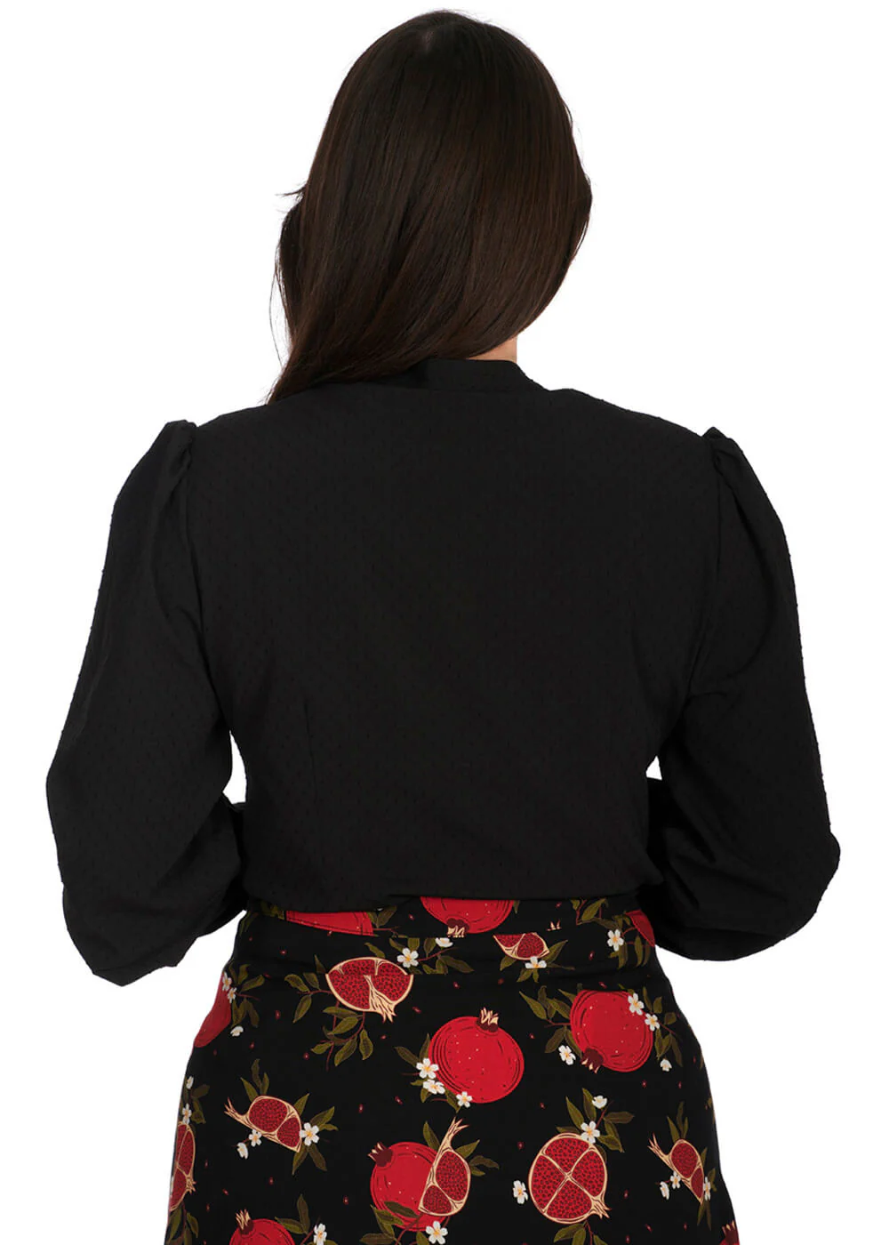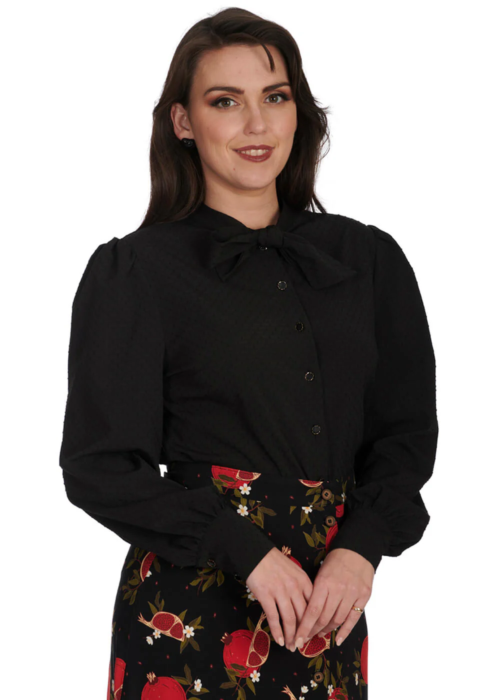 Le nom Spot Texture en dit long : cette magnifique blouse arbore une texture à pois ! Elle respire l’élégance avec ses longues manches bouffantes, ses larges poignets et bien sûr un pussybow au niveau du cou. Optez-vous pour un look femme puissante avec un pantalon taille haute ou pour un look secrétaire chic (encore plus de femmes puissantes !) avec une jupe crayon ? Quelle que soit la variation de girlboss que vous choisissez aujourd’hui : un look rétro fera certainement son petit effet !