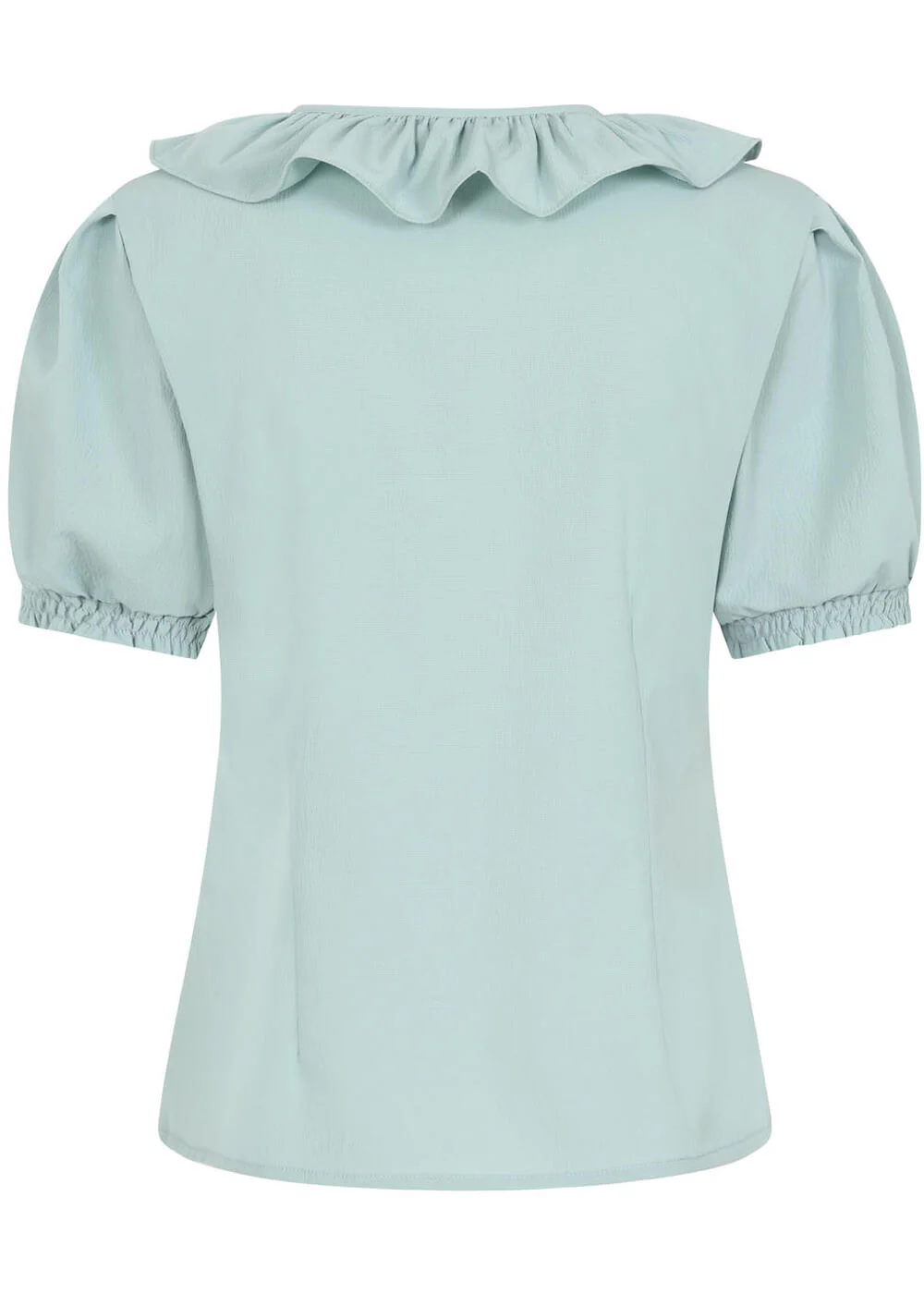 Deze romantische blouse steelt overal waar ze komt harten, die je terugvind als knoopjes! Met haar pastelkleur, geplooide randjes en korte pofmouwen is ze de retro blouse die bij elke vintage-stijl te combineren is, perfect toch? En ze heeft haar naam Summer Sweethart verdient: door de 41% bamboo loopt jij zelfs in de zomer stijlvol te flaneren. Ligt ze al in de winkelmandje?
